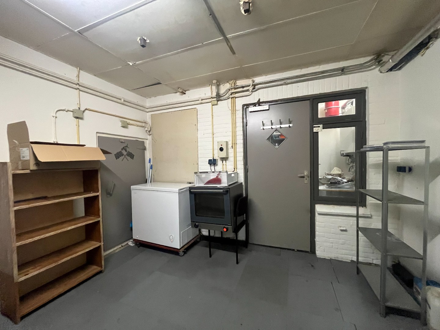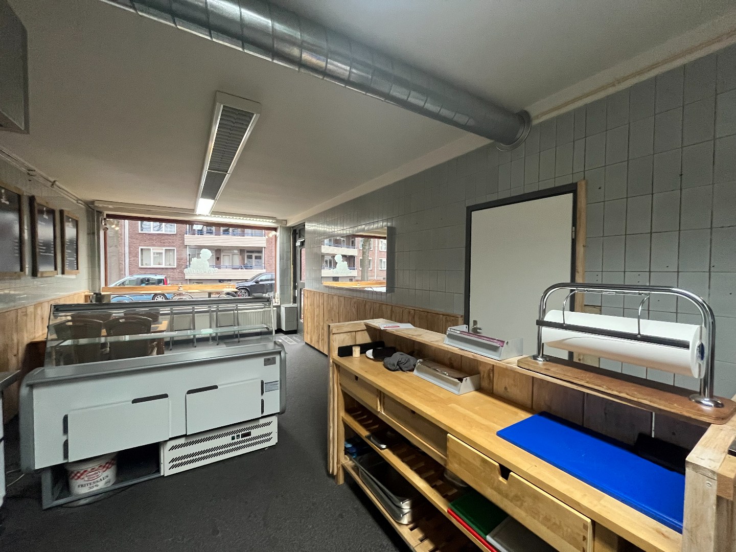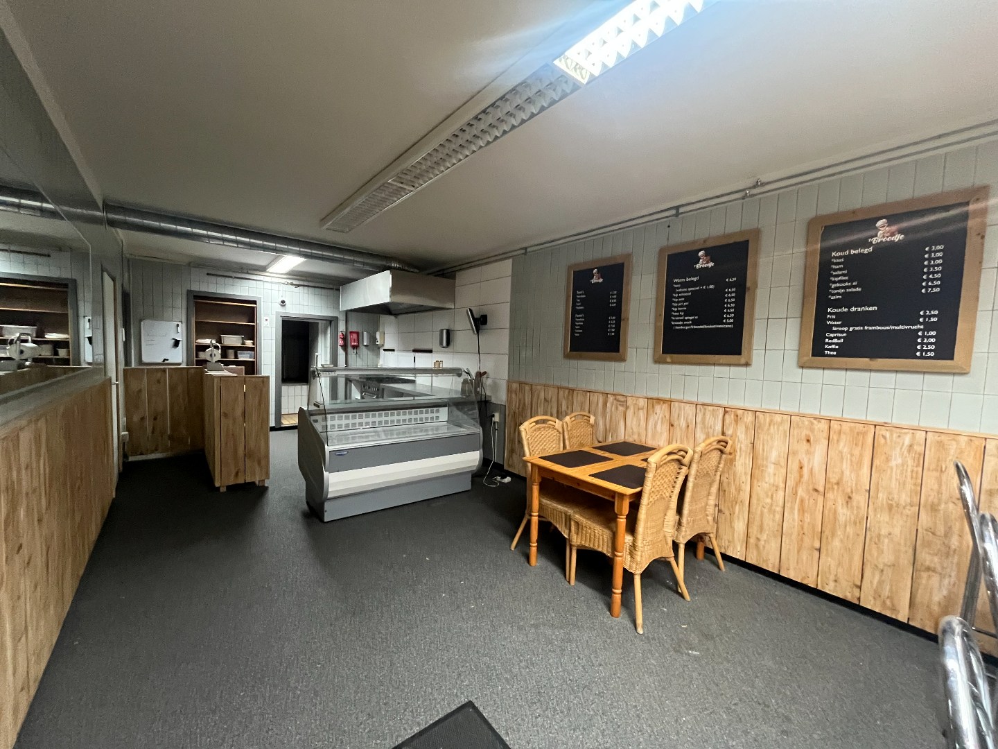 - Verdeling: Verkoopruimte/front office, keuken/werkruimte en opslag