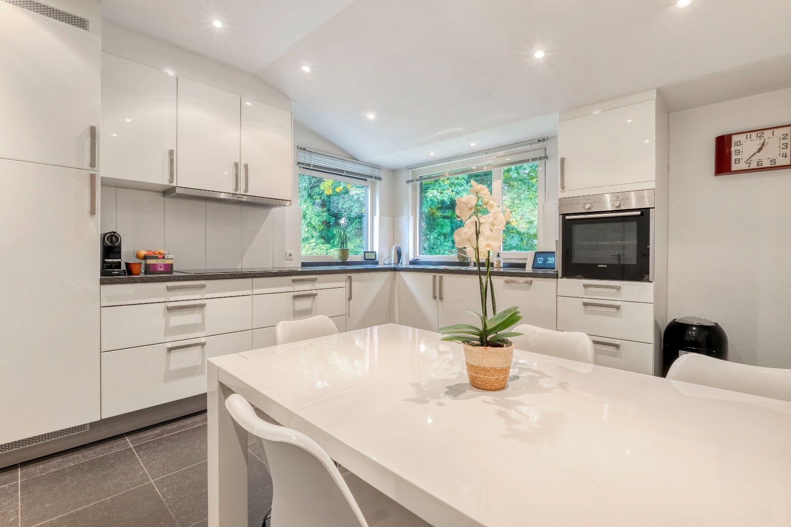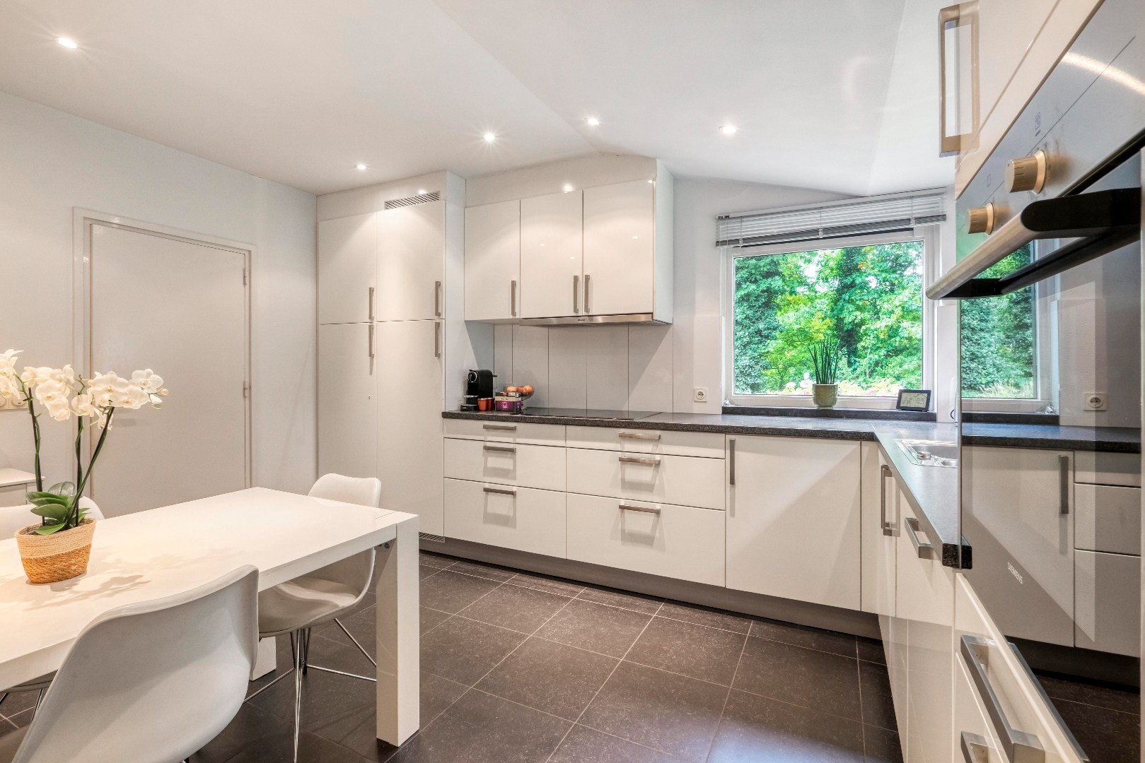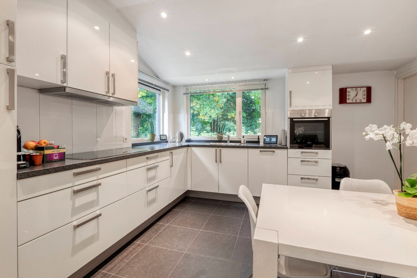 - De modern uitgevoerde woonkeuken (ca. 17,5m2) is van alle gemakken voorzien: 5-pits inductiekookplaat, oven, vaatwasser, dubbele gootsteen, afzuigkap en een koel-vriescombinatie. Terwijl je kookt, geniet je van het uitzicht op het groen. Vanuit de keuken is er toegang tot een portaal dat tevens dienst doet als bijkeuken (ca. 4,5m2): praktisch en doordacht in het gebruik.