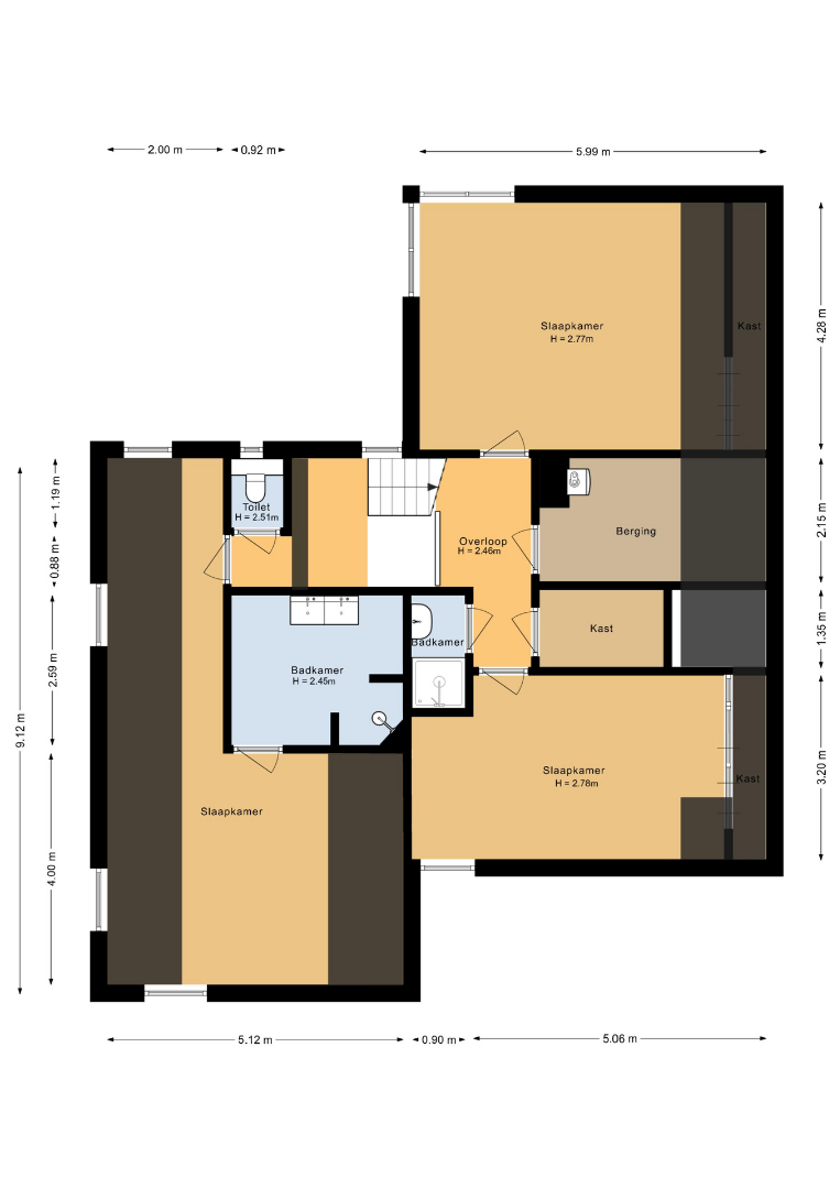 - Op de bovenste verdieping bevinden zich twee ruime slaapkamers (ca. 25m2 en 18,5m2), beide voorzien van meer dan voldoende bergruimte.
