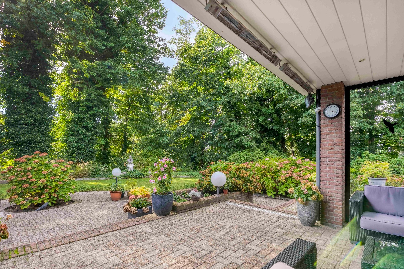 - De riante tuin rondom de woning biedt volop privacy en zicht op de bosrand, waardoor je het gevoel hebt even in een vakantiehuis te zijn. Een overkapping met heaters maakt het mogelijk comfortabel buiten te zitten.