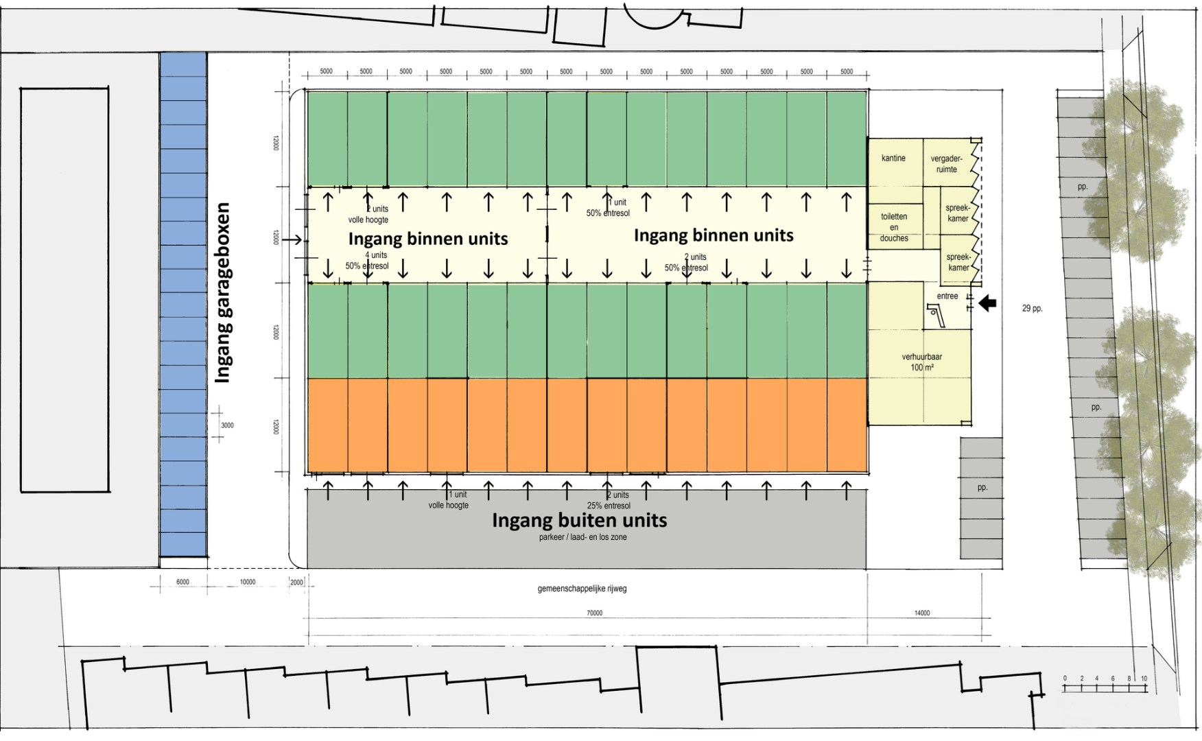 - Garageboxen: 18 m² – € 150,00 excl. btw per maand