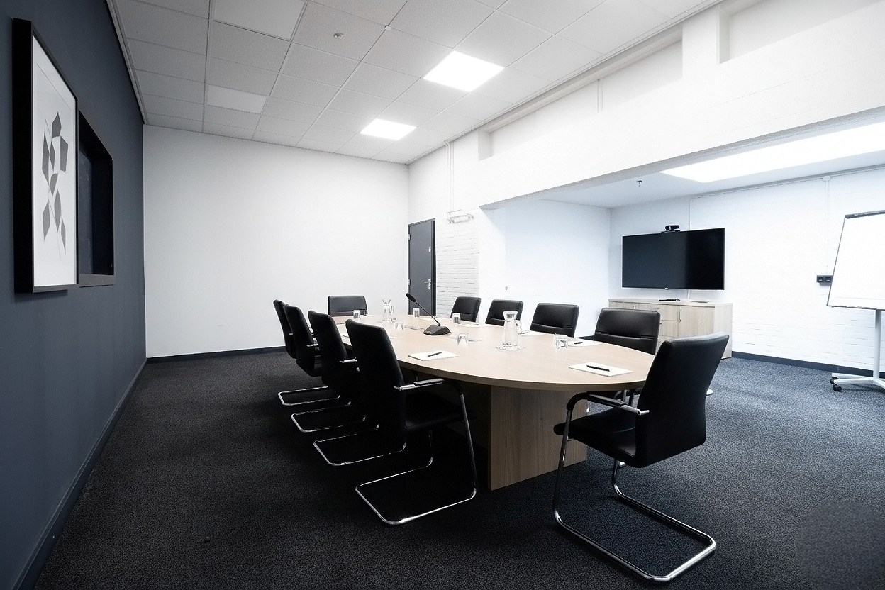 Entree/hal (ca. 10m2) met tussendeur, centrale hal (ca. 232m2) met aan de voorzijde van het gebouw nog 2 open kantoorruimtes (beide ca. 20m2), een separate kantoorruimte (ca. 11,5m2), een technische ruimte (ca. 8m2) en een vergaderruimte van maar liefst ca. 36m2 met toegang tot een berging (ca. 6m2).