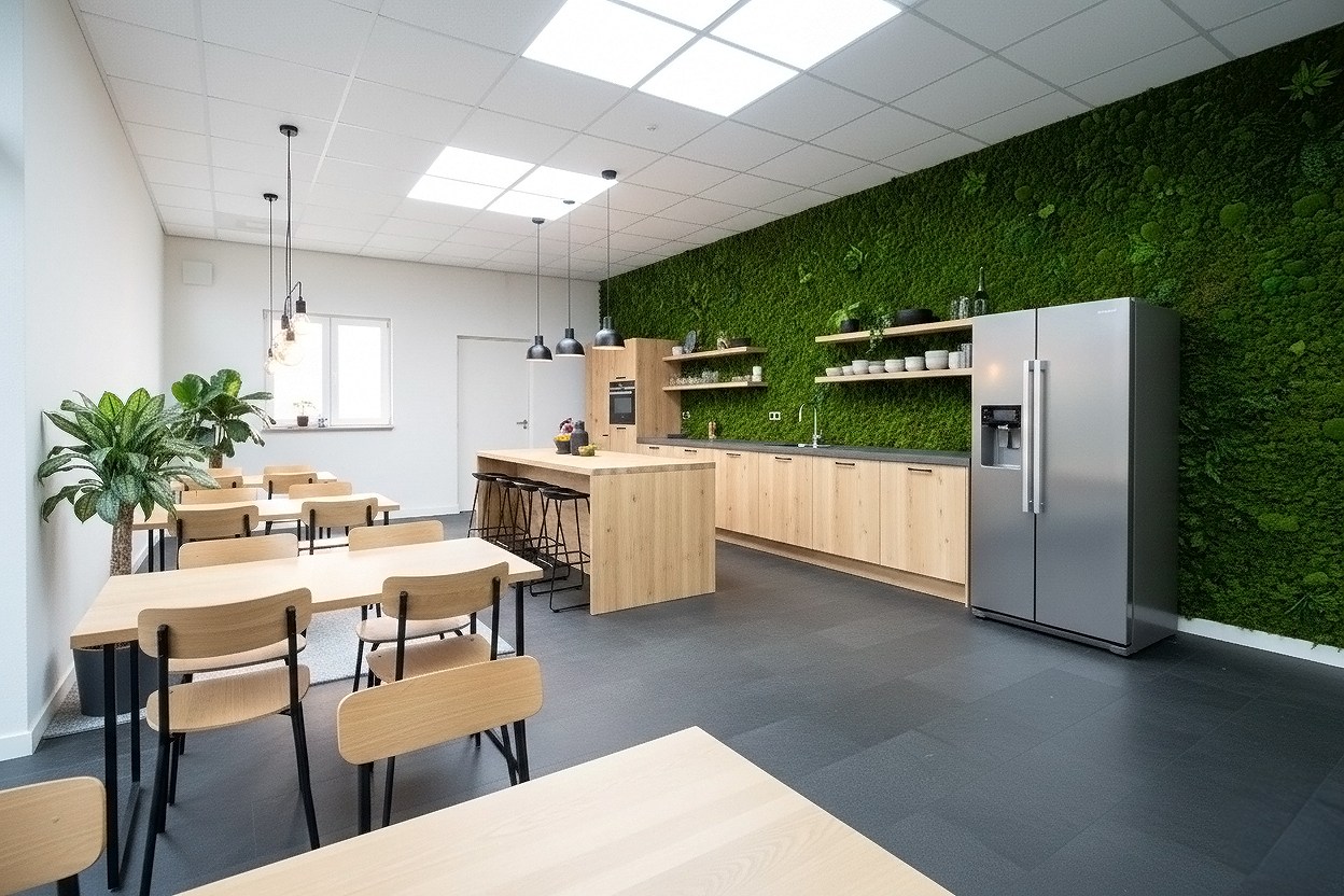 Aan de achterzijde van het gebouw bevindt zich nog een royale berging (ca. 28m2) met rolpoort, de zeer ruime kantine (ca. 41m2) met keukenblok en toegang tot een berging (ca. 5m2) en de moderne toiletruimtes.
