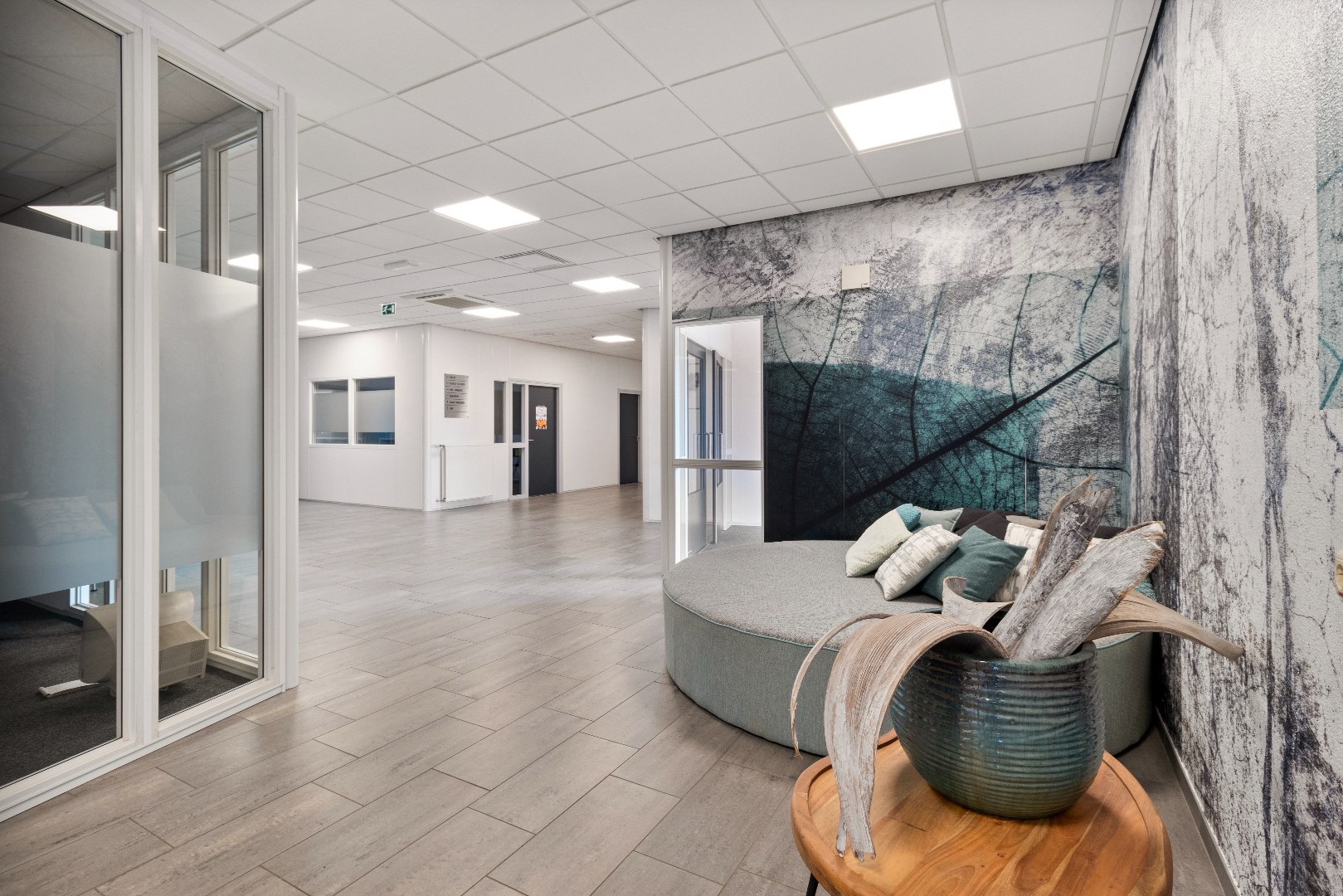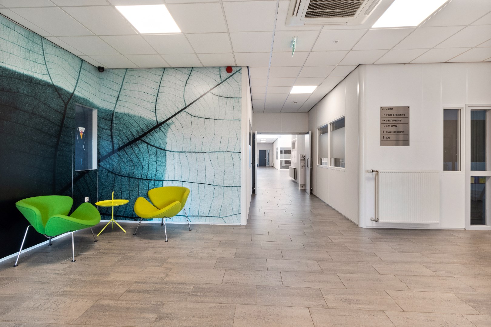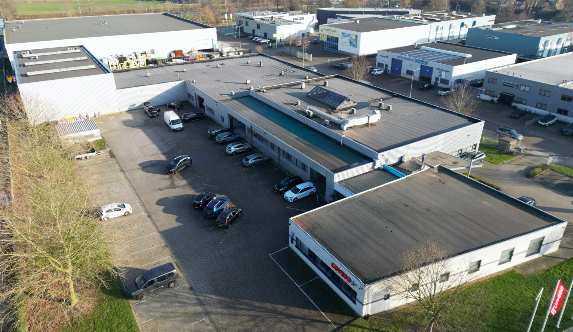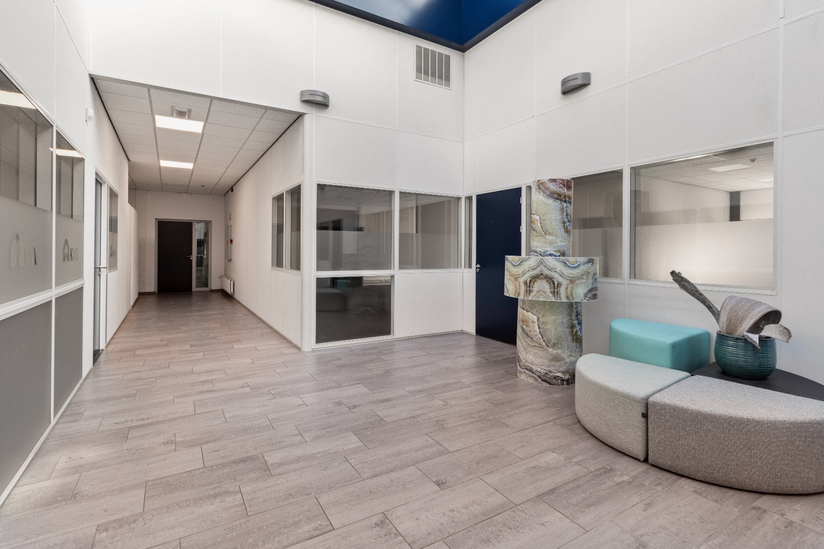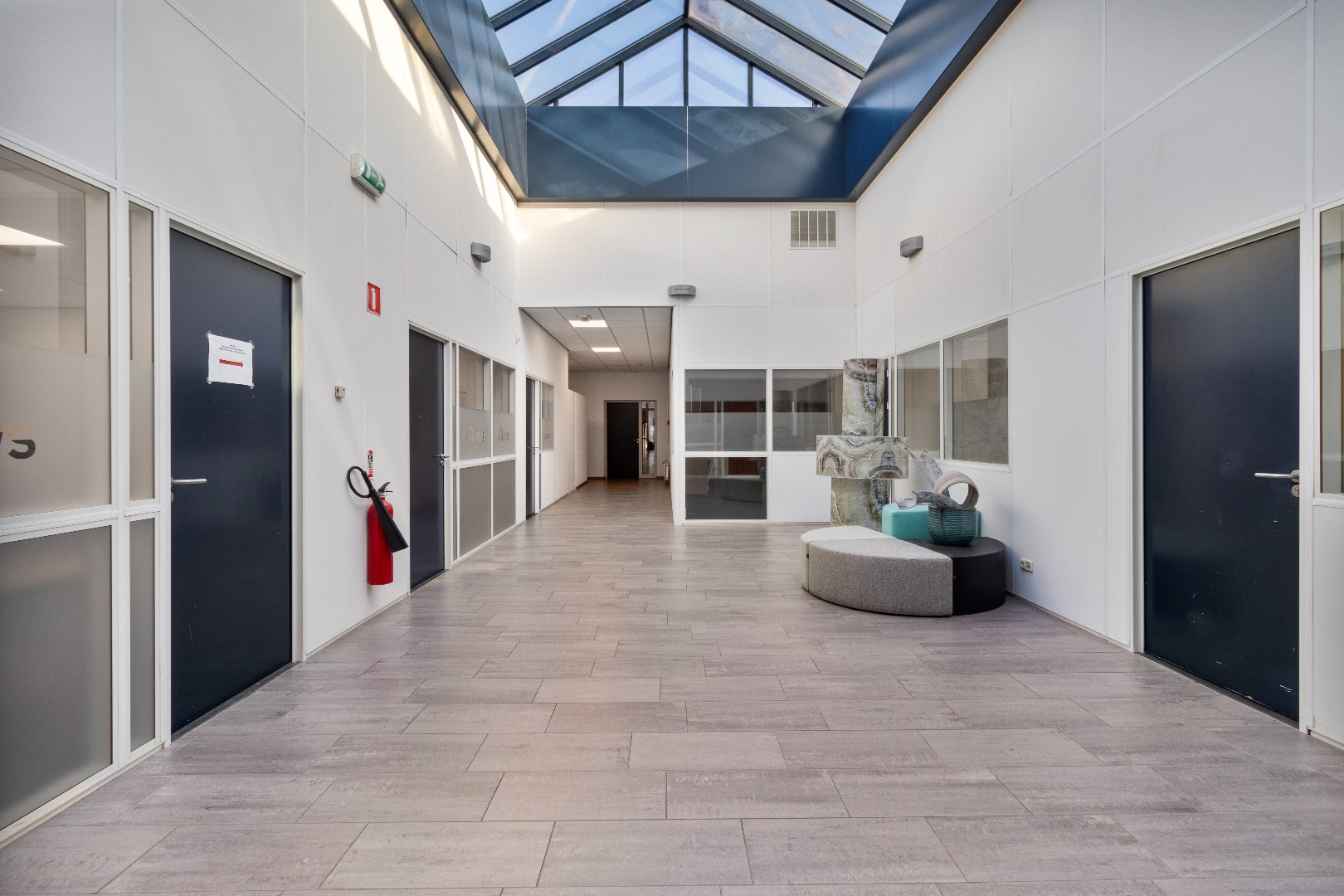 – Airco in alle kantoorruimten (plafonds);