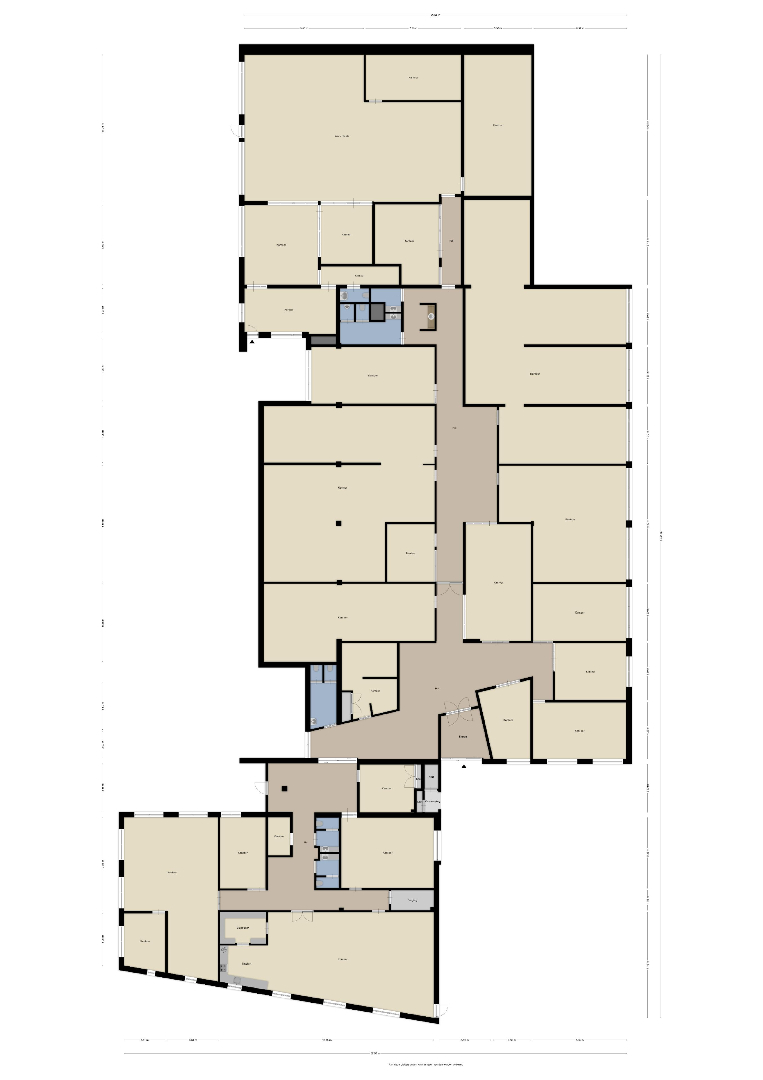 Het geheel omvat 20 kantoorkamers, in grootte variëren van circa 20 m2 tot circa 190 m2, die alle zijn voorzien van airco-units. De binnenwanden zijn uitgevoerd in een combinatie van metselwerk met systeemwanden, waarbij die laatste deels flexibel verplaatsbaar zijn waardoor individuele indelingen tot de mogelijkheden behoren. De centrale verkeersruimten hebben een hoogwaardige vloerafwerking van keramische tegels, de kantoorruimten zijn alle voorzien van vaste vloerbedekking in uitstekende conditie.
