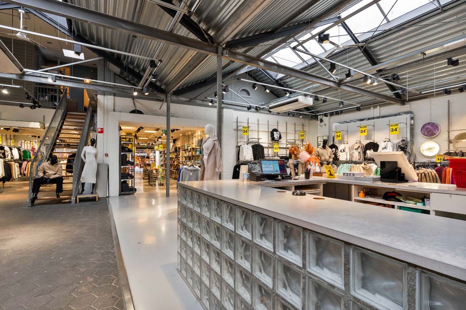 Winkelruimte gelegen aan de Lomstraat 40, midden in het kernwinkelgebied van Venlo. Het betreft een ruim en karaktervol winkelpand met een totale verhuurbare vloeroppervlakte van circa 819 m² v.v.o., verdeeld over meerdere bouwlagen. De winkel beschikt over een open en overzichtelijke verkoopvloer met hoge plafonds, veel daglicht dankzij dakramen en een industriële uitstraling met zichtbare staalconstructies. De verschillende niveaus zijn logisch met elkaar verbonden en bieden uitstekende mogelijkheden voor productpresentatie, routing en zonering. De ruimte is uitermate geschikt voor grootschalige retailconcepten, outletformules en merken die behoefte hebben aan zichtbaarheid en flexibiliteit in de indeling.