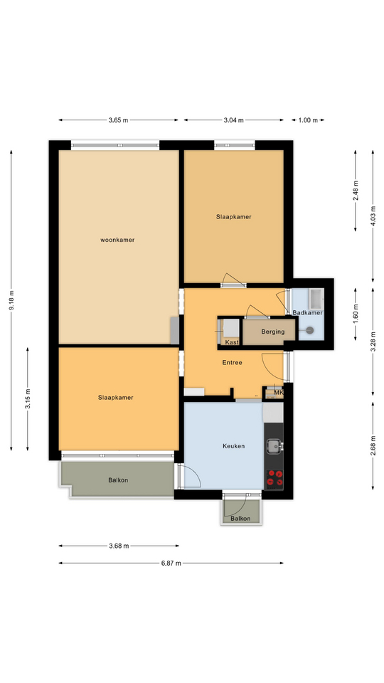 - Het balkon aan de voorzijde is via de woonkamer én keuken bereikbaar