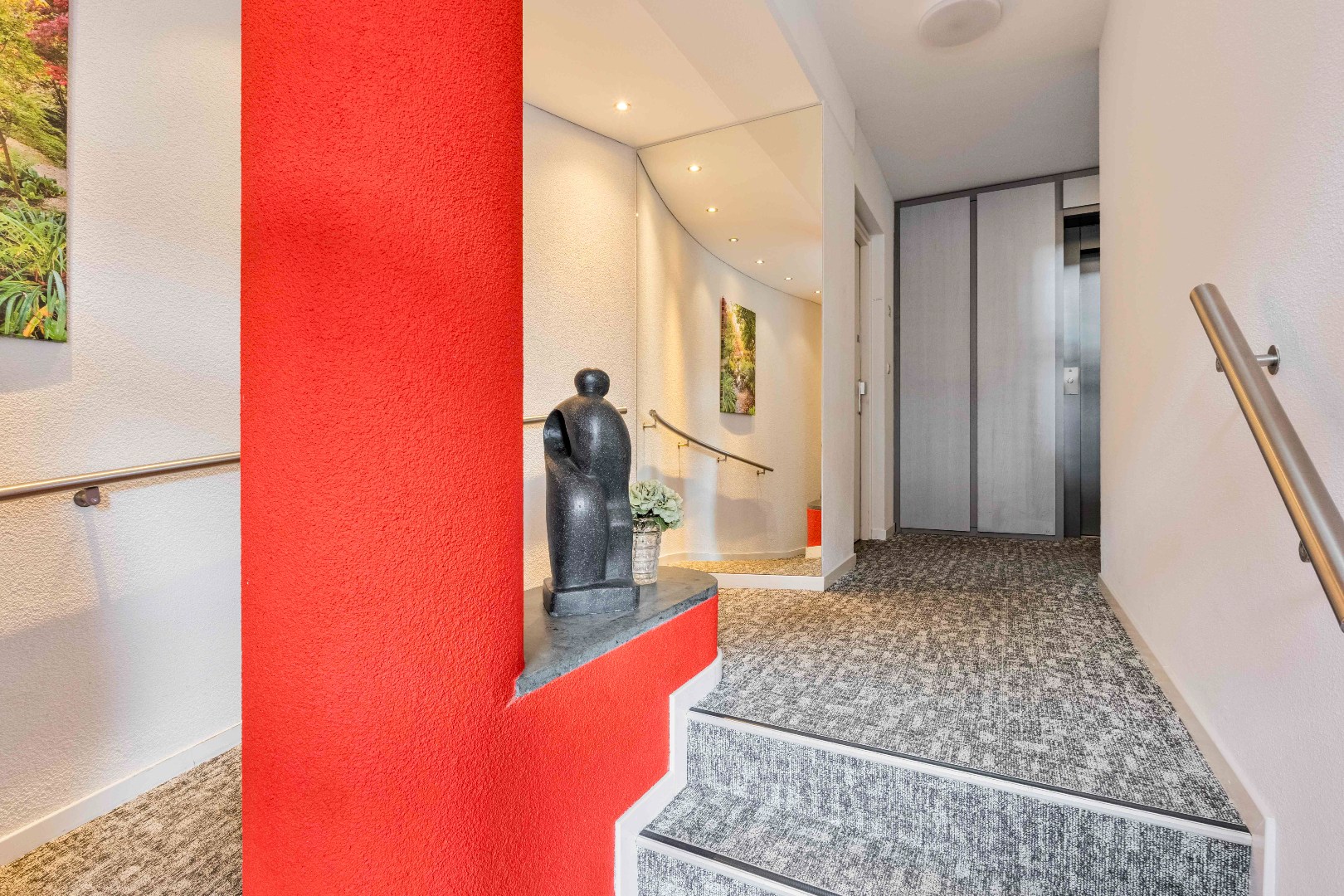 De gezamenlijke entree is voorzien van een brievenbussentableau, videofooninstallatie, trapopgang en lift naar zowel de parkeerkelder als de woonverdiepingen.