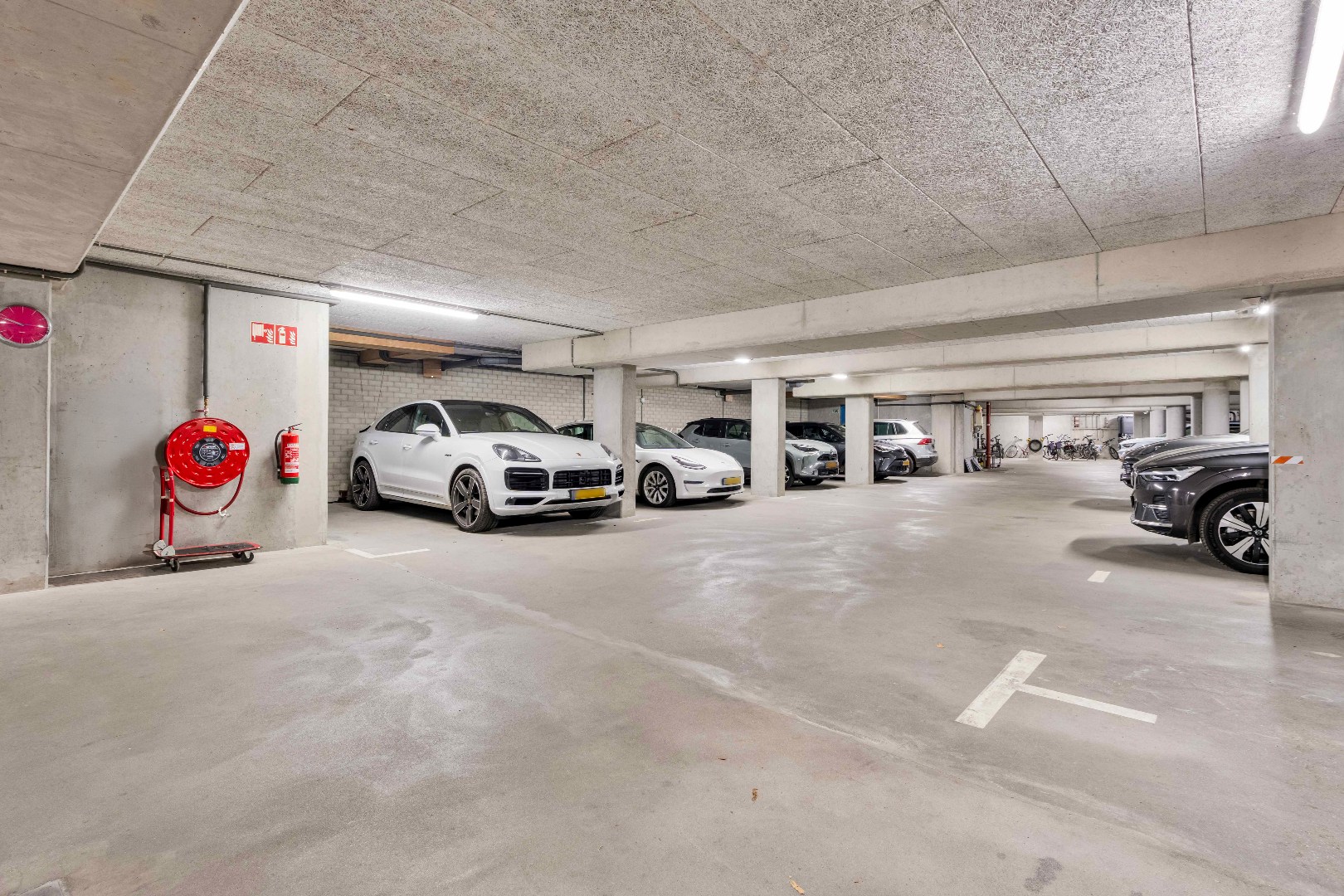 Onder het gebouw bevindt zich de afgesloten parkeerkelder waar u de beschikking heeft over één privéparkeerplaats. Daarnaast is er een ruime, eigen berging (ca. 8,8 m²). Ook is er een gezamenlijke fietsenstalling aanwezig.