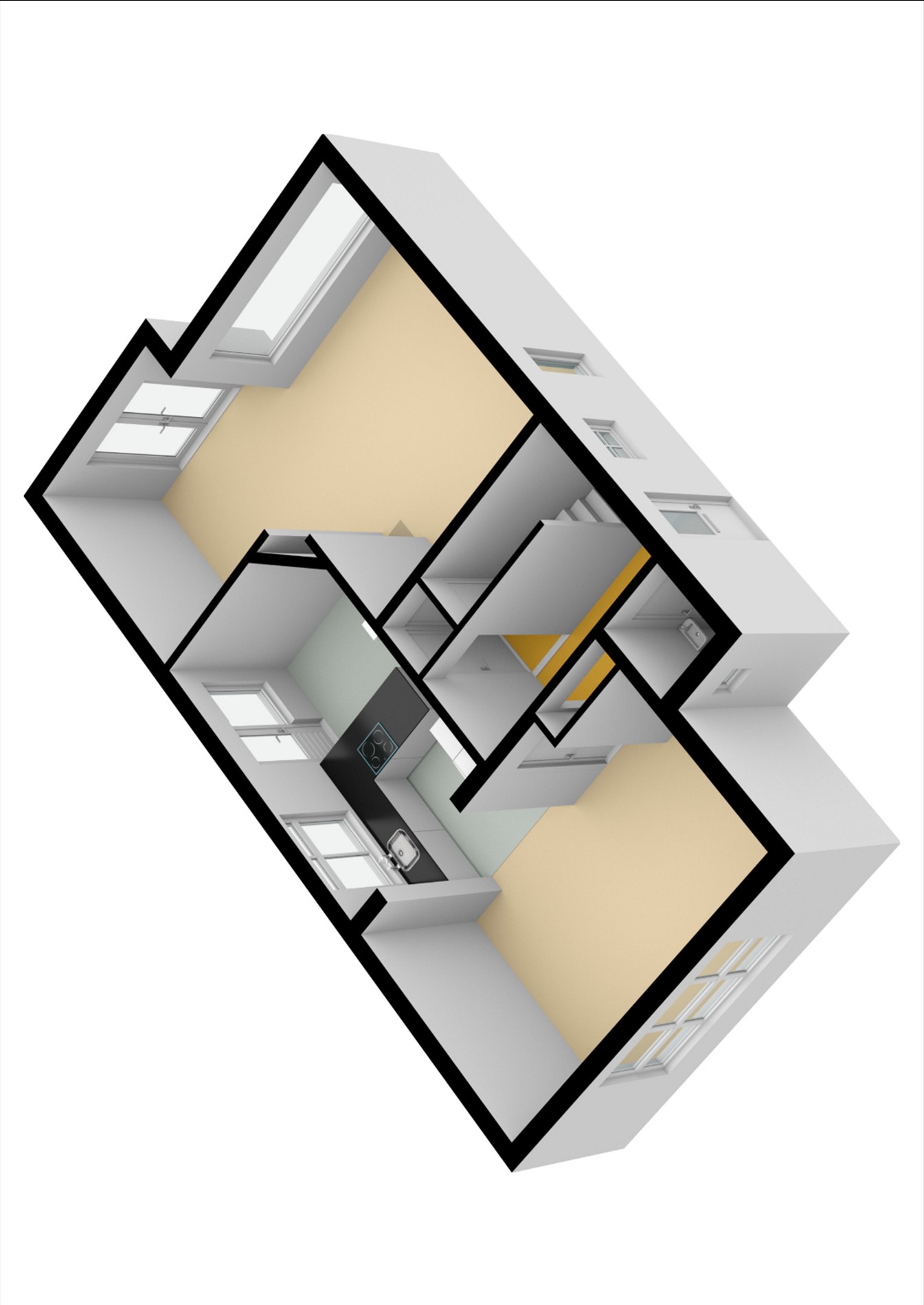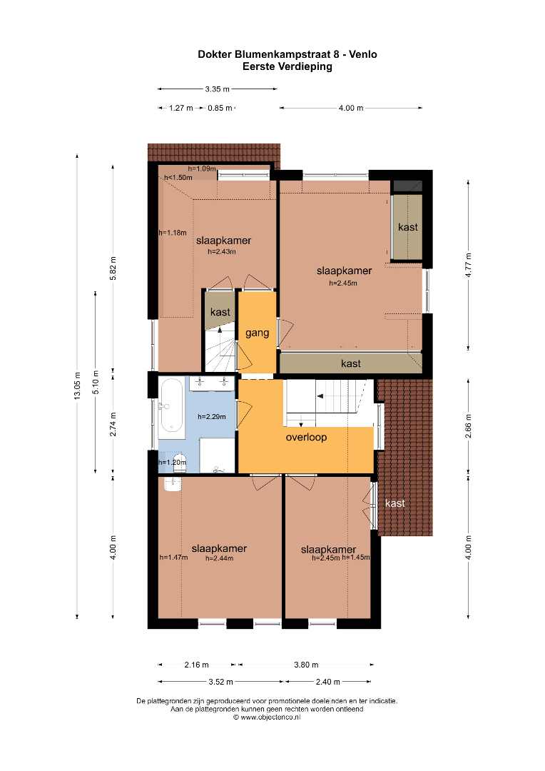 - De kantoorruimte (ca. 9,5m2) is praktisch ingericht en voorzien van extra bergruimte, de logeerkamer (ca. 14m2) beschikt over een eigen wastafel, de derde slaapkamer (ca. 14,5m2) biedt eveneens handige bergruimte en de master bedroom is royaal van opzet (ca. 19m2) en beschikt over twee inbouwkasten.