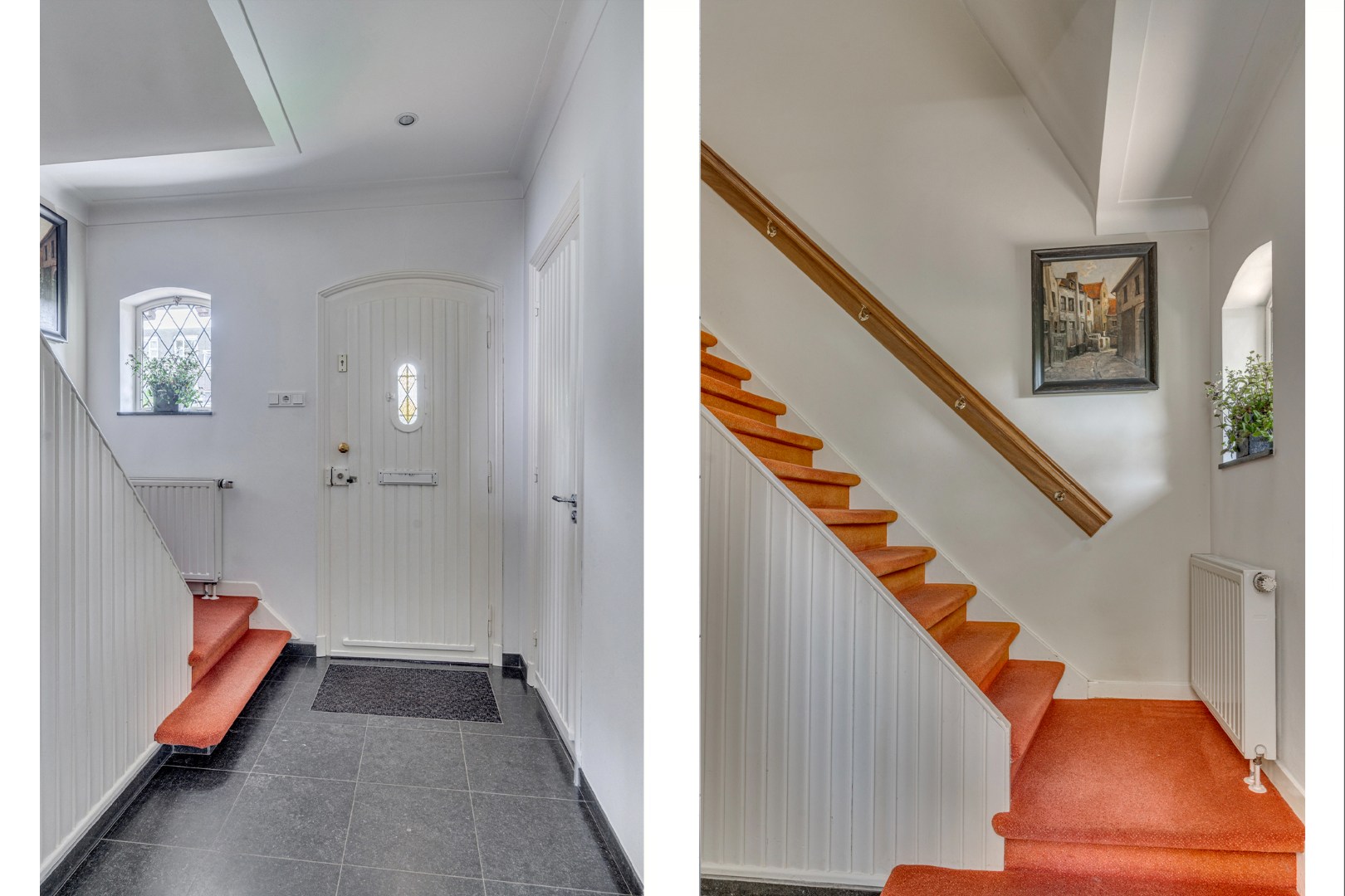 - Bij binnenkomst word je verwelkomd in een ruime hal met verlichte garderobe, een separaat toilet met hangcloset en fontein, en een stijlvol open trappenhuis dat direct de toon zet voor de rest van de woning.