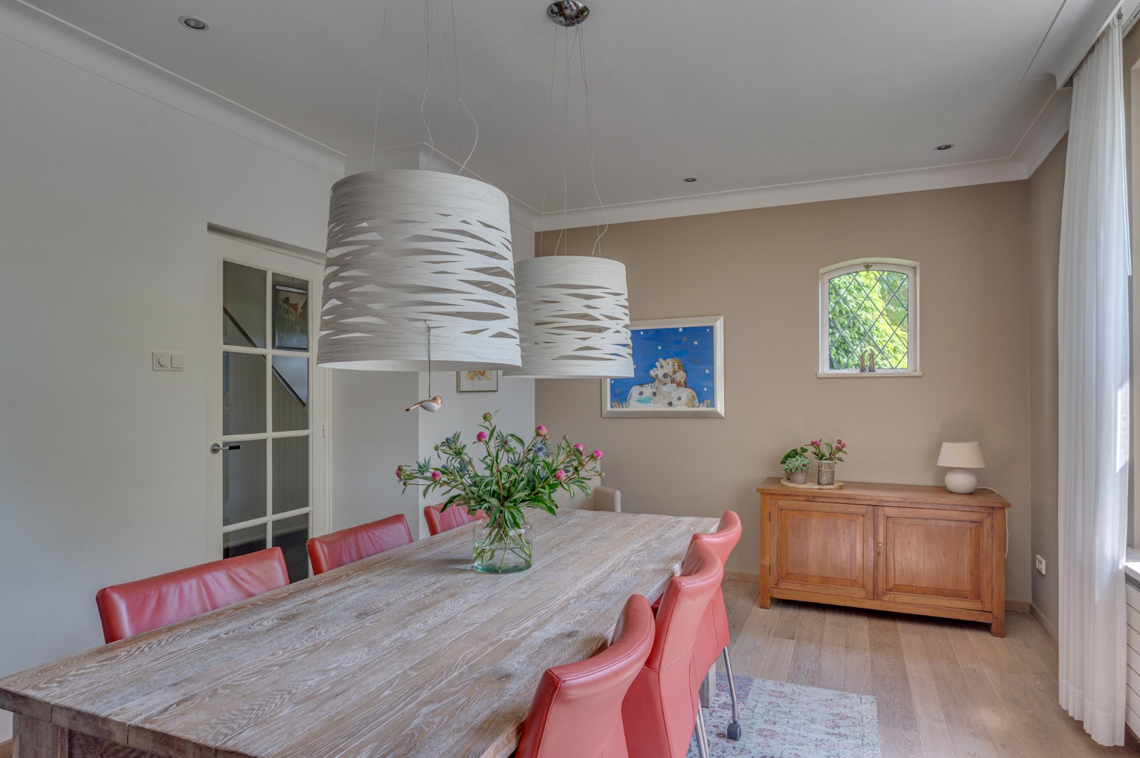 - Karaktervolle elementen zoals diverse paneeldeuren en glas-in-loodramen zijn behouden en versterken de authentieke uitstraling