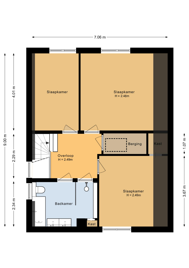 - Daarnaast is er een praktische berging, momenteel in gebruik als royale inloopkast, met een wateraansluiting voor bijvoorbeeld een wasmachine of wastafel.