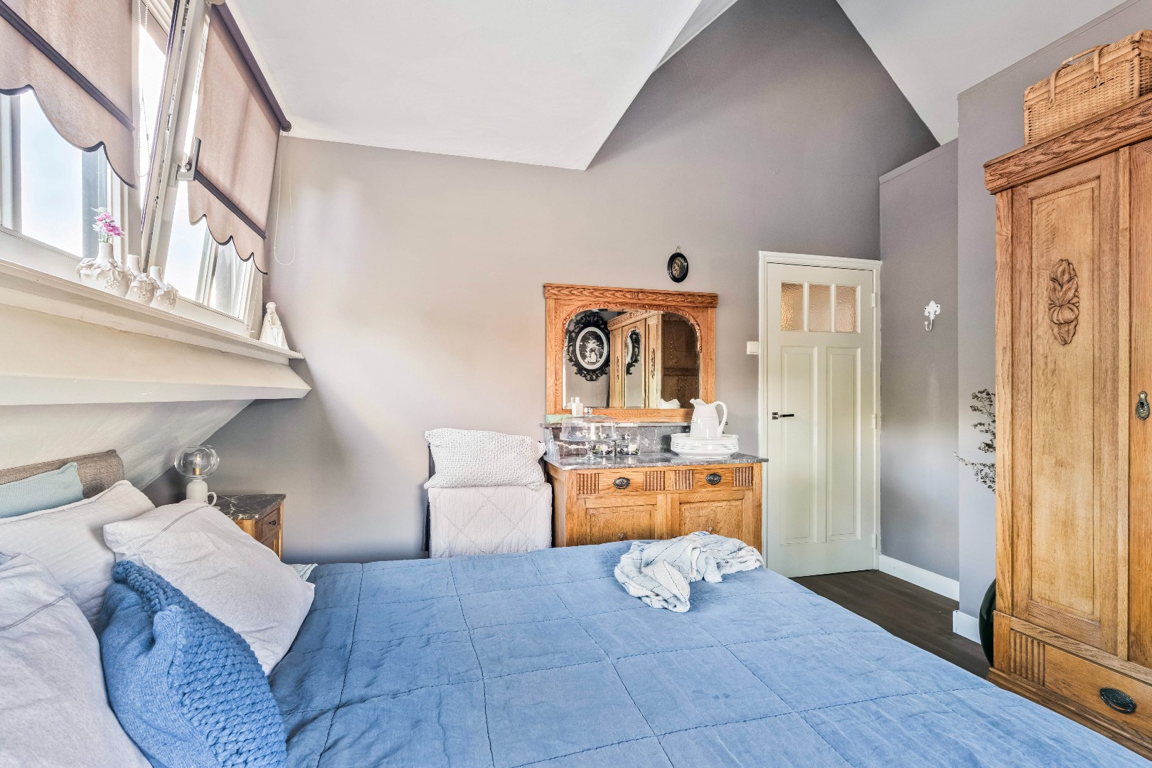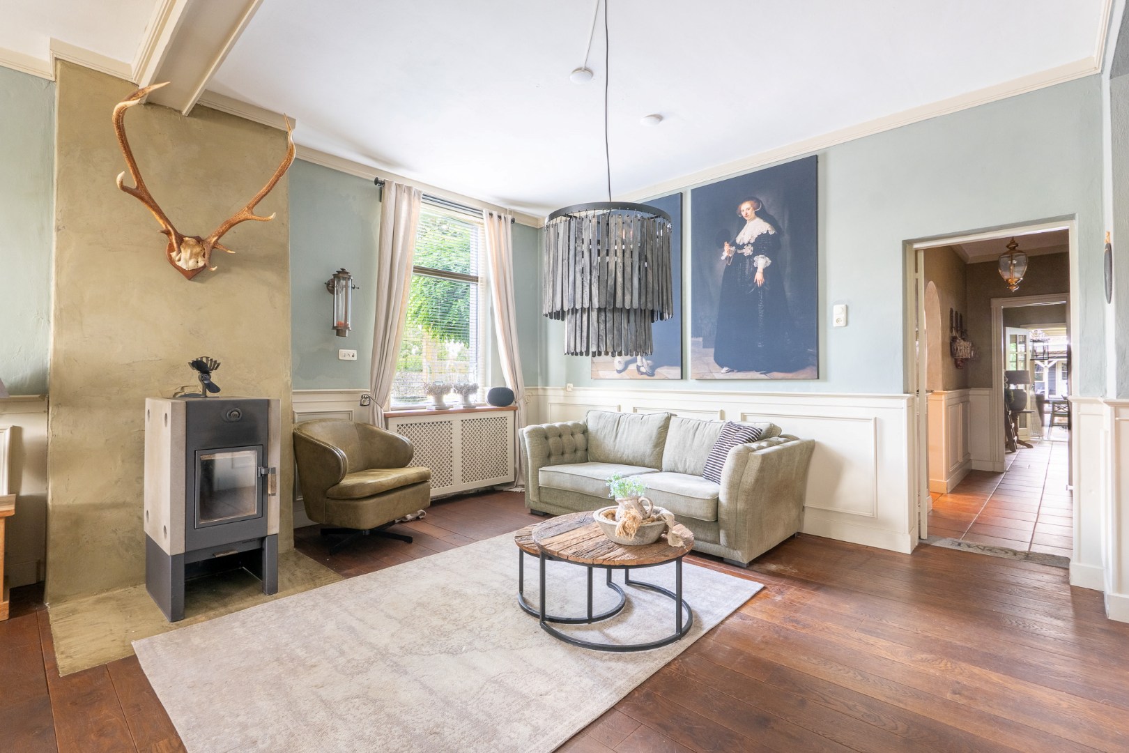 Bij binnenkomst valt direct de royale leefruimte op. De woonkamer van ca. 45 m² is licht en sfeervol, voorzien van karakteristieke details. De opkamer van ca. 10 m² biedt extra mogelijkheden, bijvoorbeeld als werkkamer of speelkamer. Vanuit de centrale hal zijn diverse vertrekken bereikbaar, waaronder een badkamer met ligbad en douche, twee bergingen (waarvan één met witgoedaansluiting) en een separate toiletruimte. De keuken is ruim opgezet en beschikt over een schiereiland met zitgelegenheid, ideaal voor ontbijt of borrel. De inbouwapparatuur omvat twee ovens, een grilloven, een 5-pits gasfornuis, een afzuigkap, vaatwasser, koelkast en dubbele wastafel. Via de keuken is de tuin bereikbaar.