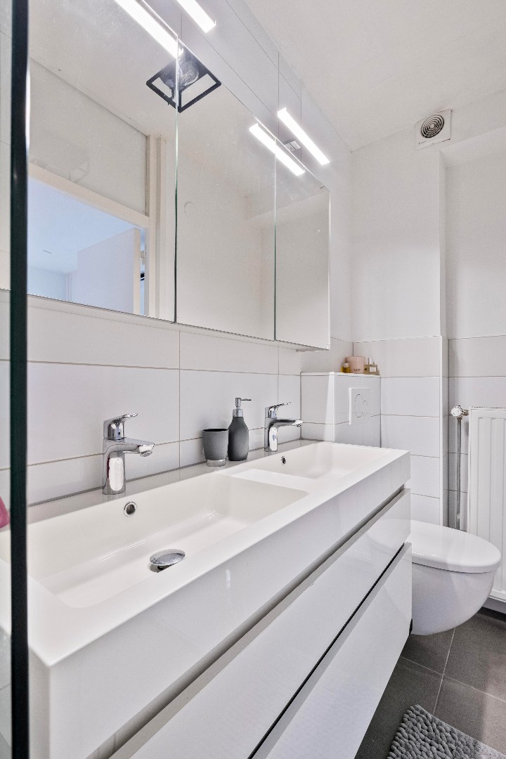 • Moderne badkamer (2022) met inloopdouche, dubbele wastafel en hangend toilet