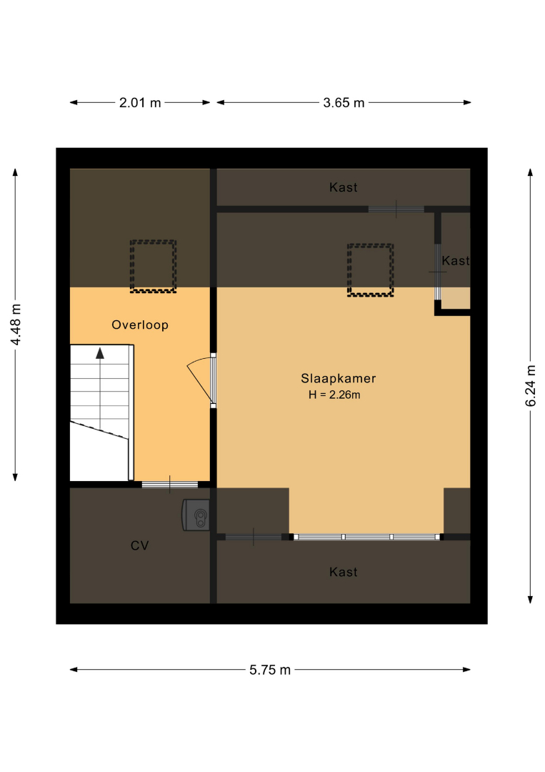 De vaste trap leidt naar de tweede verdieping. Hier bevindt zich een vierde slaapkamer van ca 16m2 uitgerust met dakkapel. Daarnaast is er nog een royale hoeveelheid bergruimte beschikbaar.