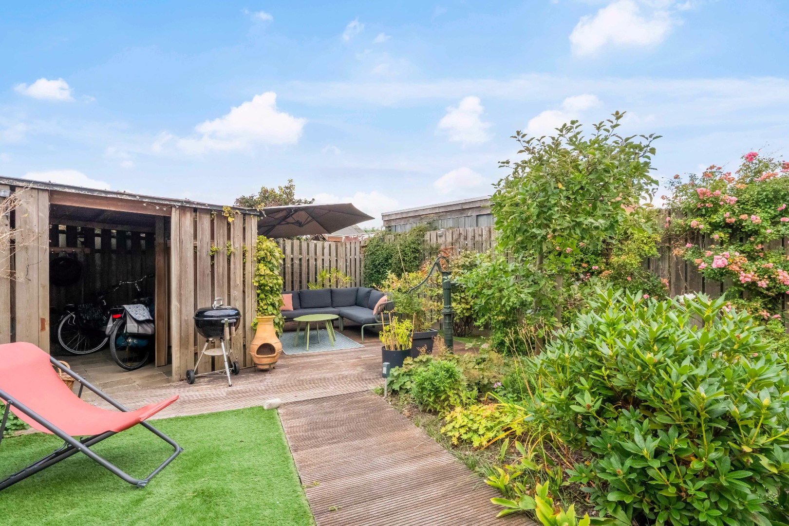In deze achtertuin combineer je comfort en gemak. De vrije achterom zorgt voor een praktische toegang.
