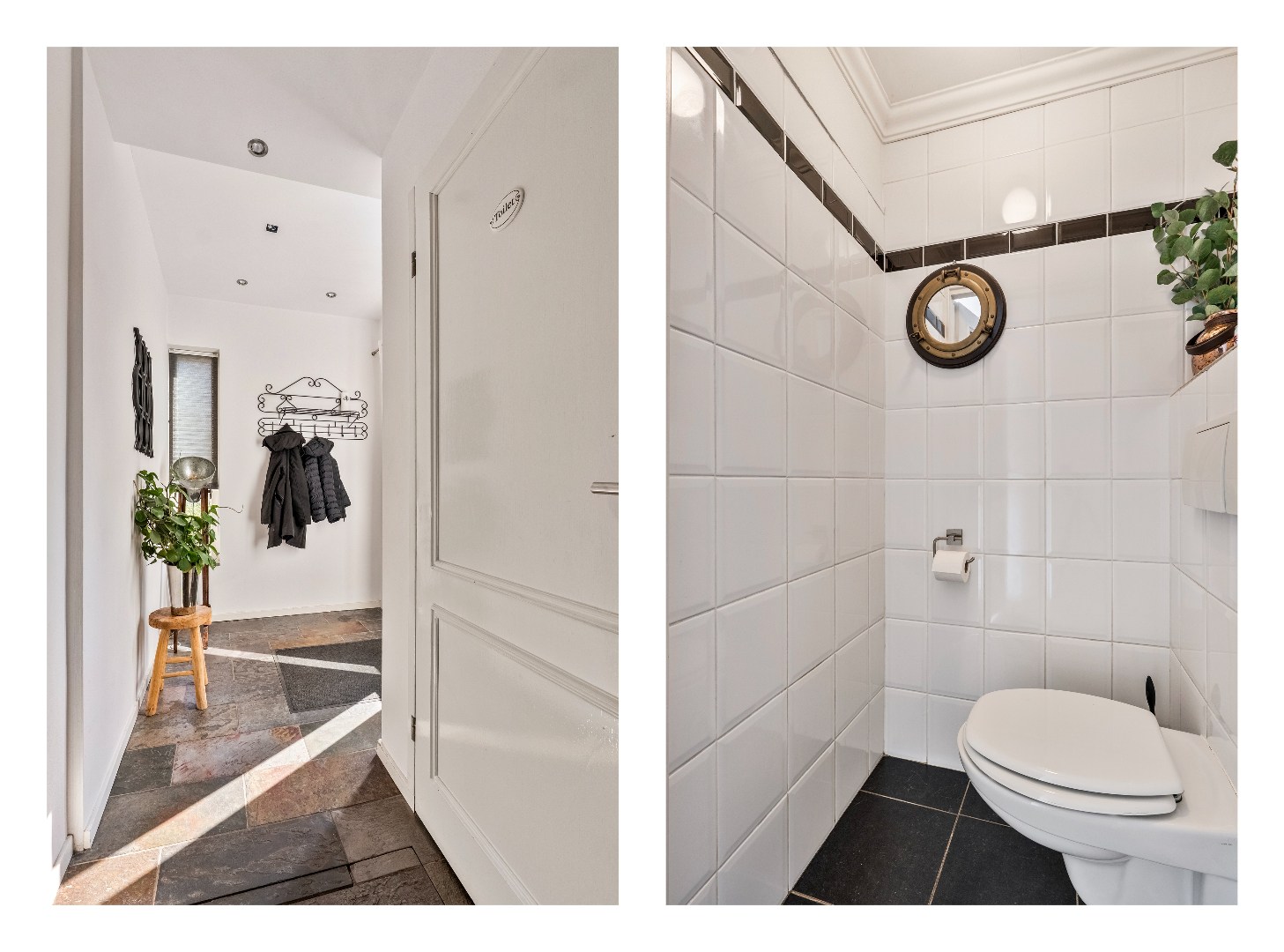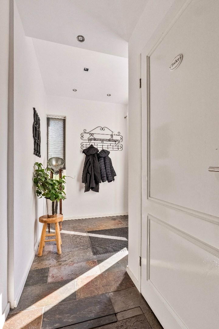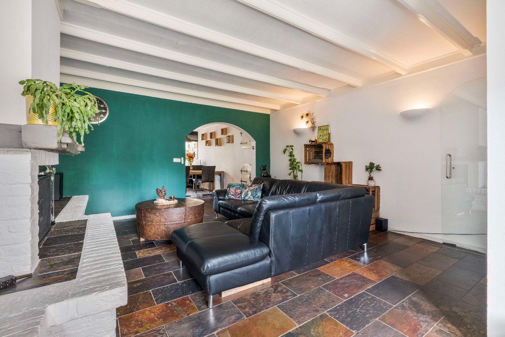 Ruime uitgebouwde hal met toegang tot de woonkamer. De woonkamer van Ca. 27 m2 heeft grote raampartijen die zorgen voor een prettige lichtinval. Er ligt een natuurstenen vloer en er is een houtgestookte haard aanwezig. De aangrenzende leefkeuken van Ca. 21 m2 biedt volop plek voor een royale eethoek en geeft uitzicht op de tuin. Vanuit de keuken is de achtertuin bereikbaar.