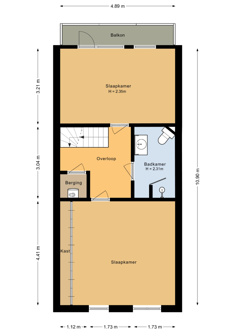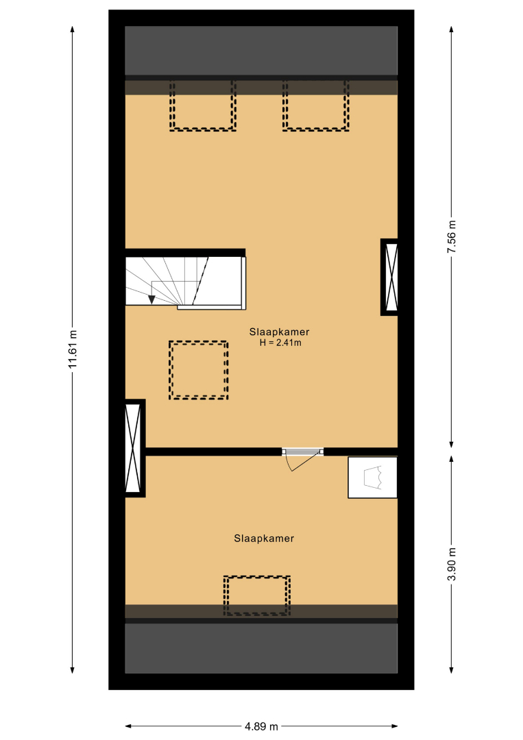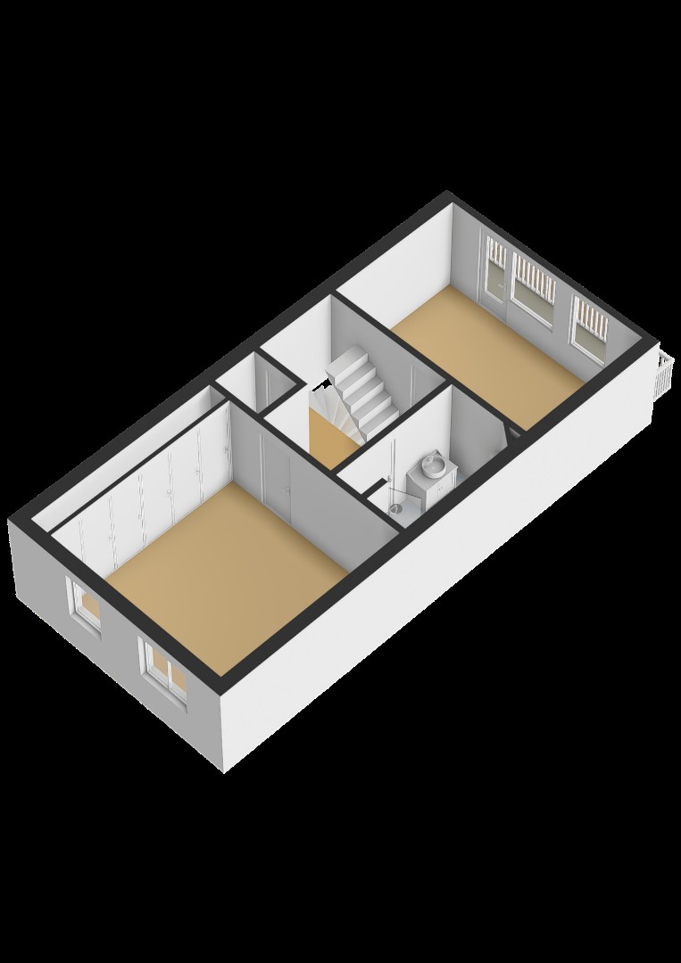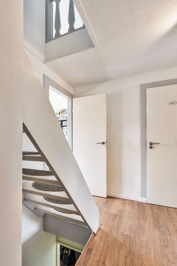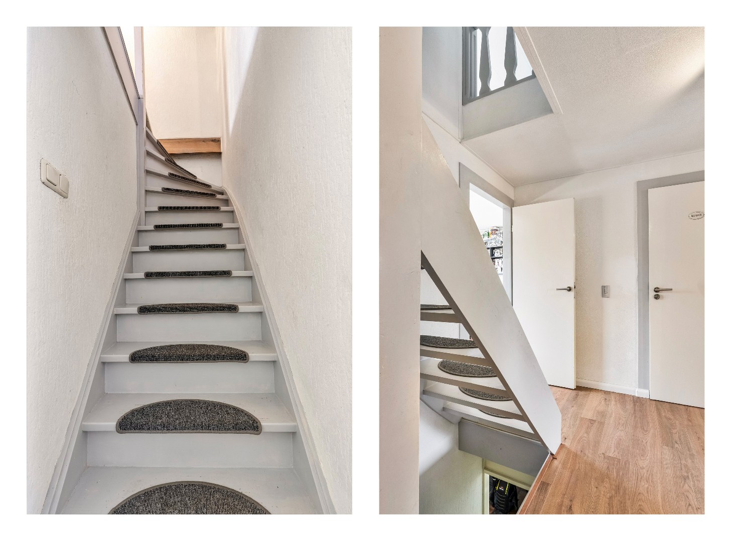 De tweede verdieping is verdeeld in twee slaapkamers van respectievelijk Ca. 31,5 m2 en 14 m2. Er ligt een nette laminaatvloer en er is een witgoedaansluiting aanwezig.