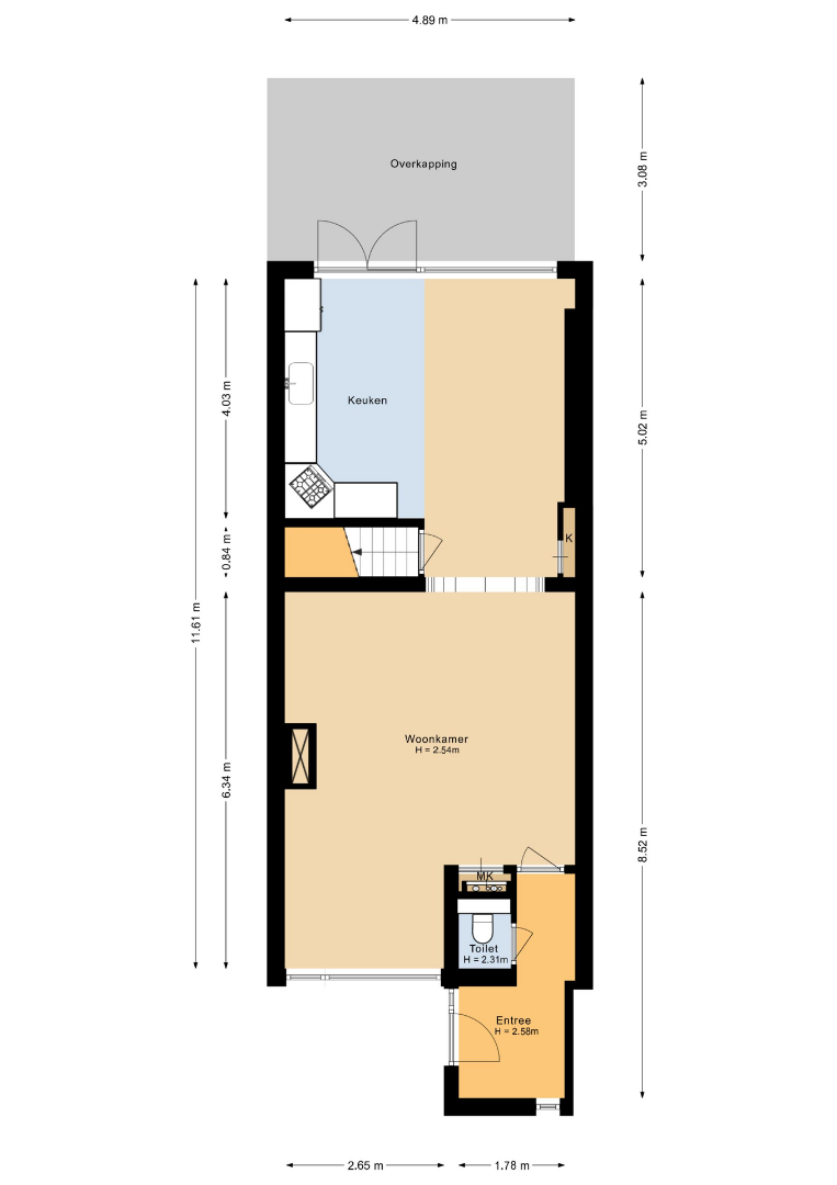 • Woonkamer van Ca. 27 m2 en keuken van Ca. 21 m2