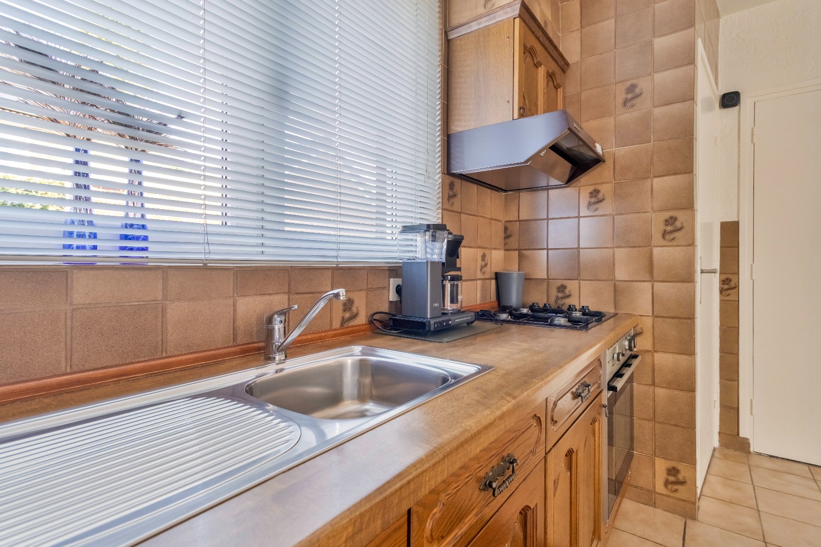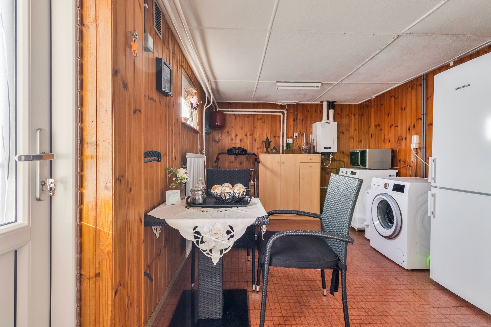Entree via de hal met toilet en fonteintje, meterkast en toegang tot de lichte doorzonwoonkamer (ca. 35m2). De open keuken van ca. 9,5m2 is voorzien van diverse apparatuur zoals een 4-pits gasfornuis, een oven, koelkast en afzuigkap, en sluit aan op de praktische bijkeuken (ca. 14m2) met witgoedaansluiting. Vanuit hier is er volop potentie om de leefruimte geheel naar eigen smaak te creëren.