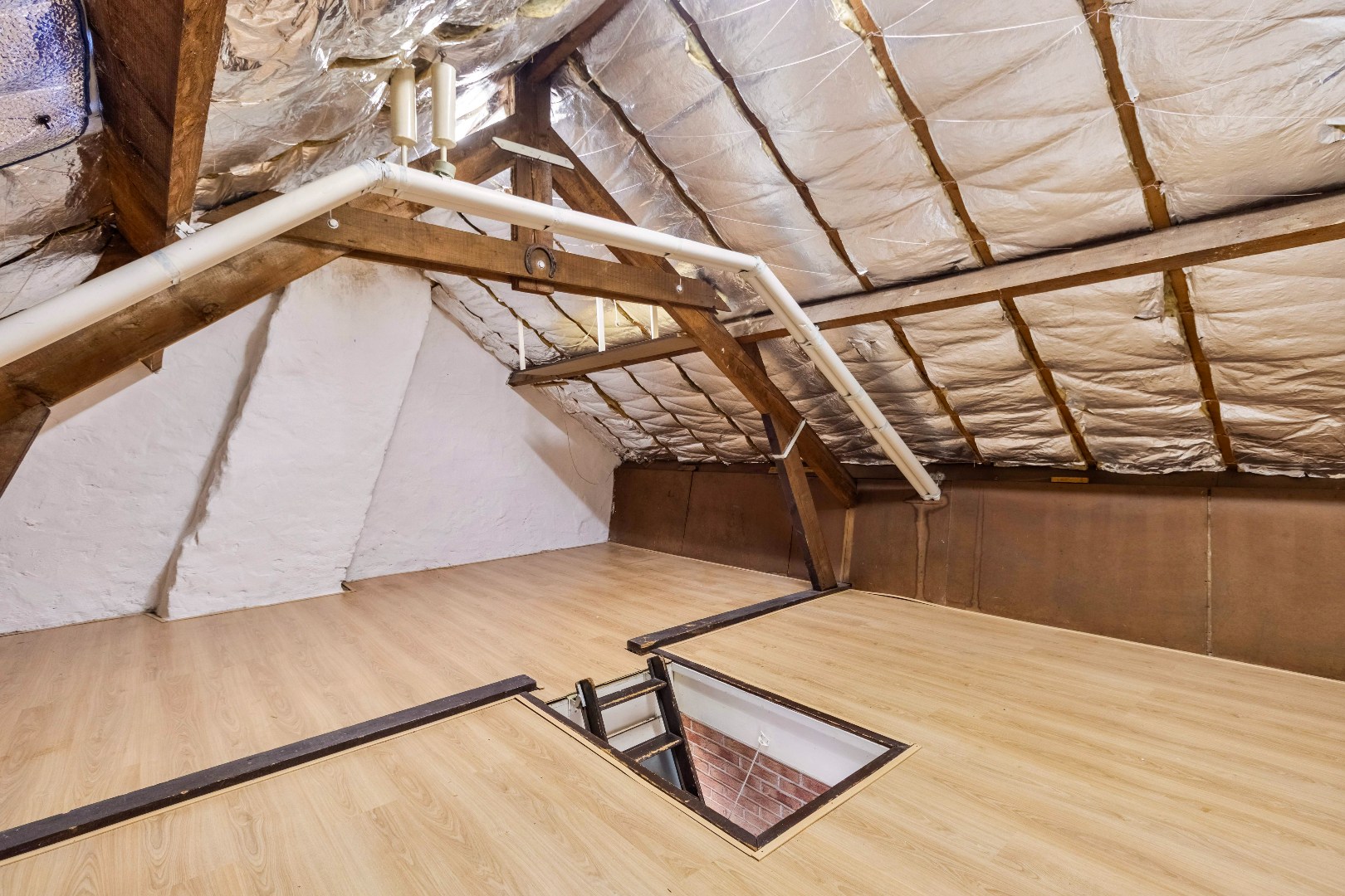 Via een vlizotrap bereik je de royale zolderverdieping van ca. 29,5m2, met veel bergruimte en extra mogelijkheden. Door het plaatsen van een vaste trap behoort het realiseren van een extra kamer zeker tot één van de mogelijkheden.