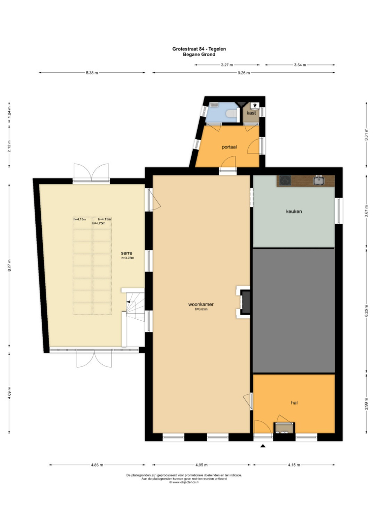 - Totaal ca. 264m2 commerciële ruimte (begane grond + souterrain)