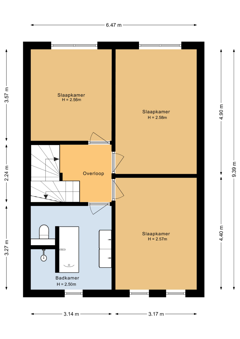 • Vier ruime slaapkamers