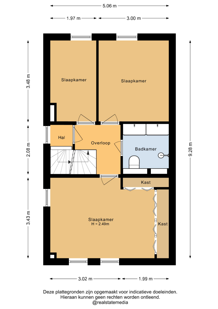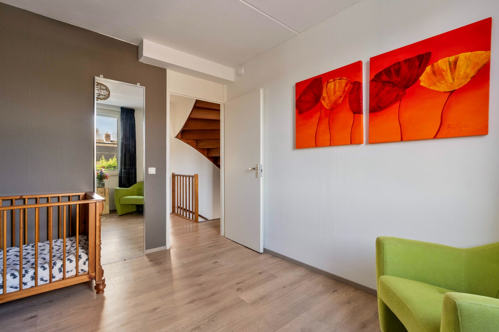 Op deze verdieping bevinden zich drie volwaardige slaapkamers (ca. 17m2, 10,5m2 en 7m2), waardoor er volop ruimte is voor een gezin, thuiswerkplek of hobbykamer.