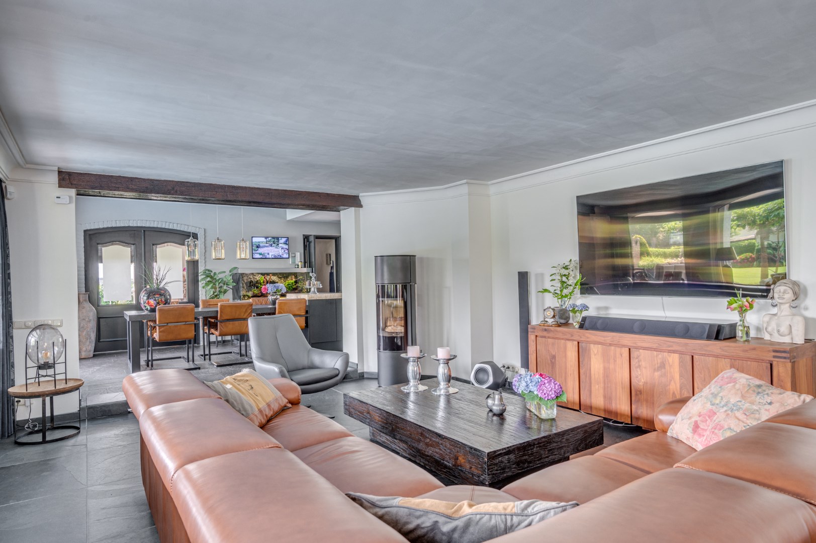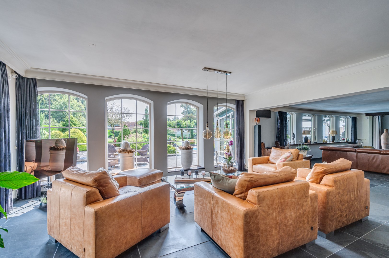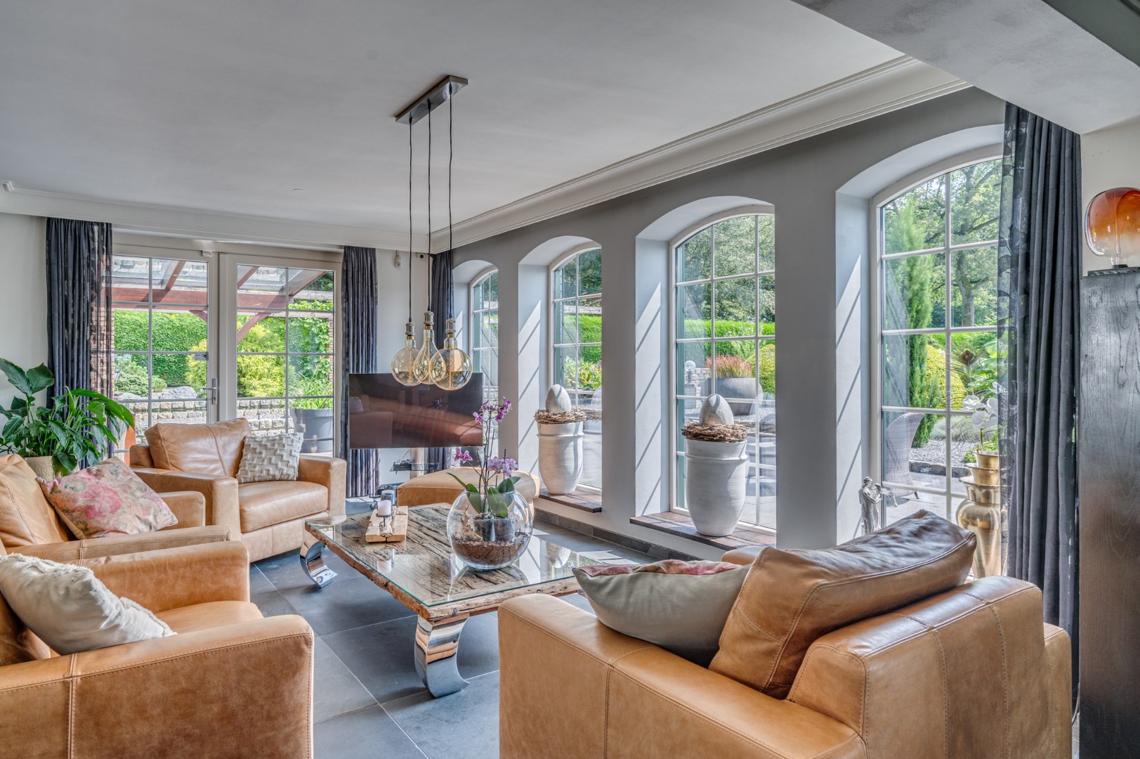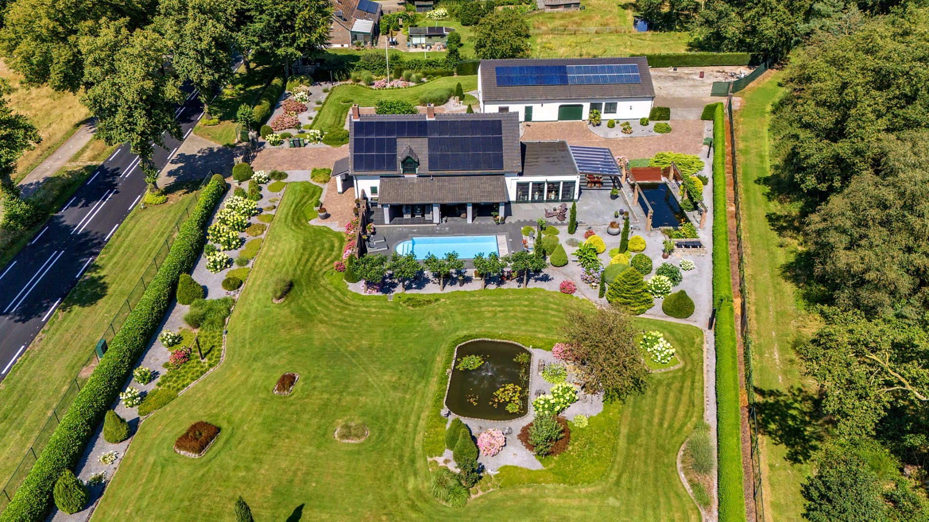 • Tuin met 2 royaal overdekte terrassen, verwarmd zwembad, buitenkeuken, visvijver