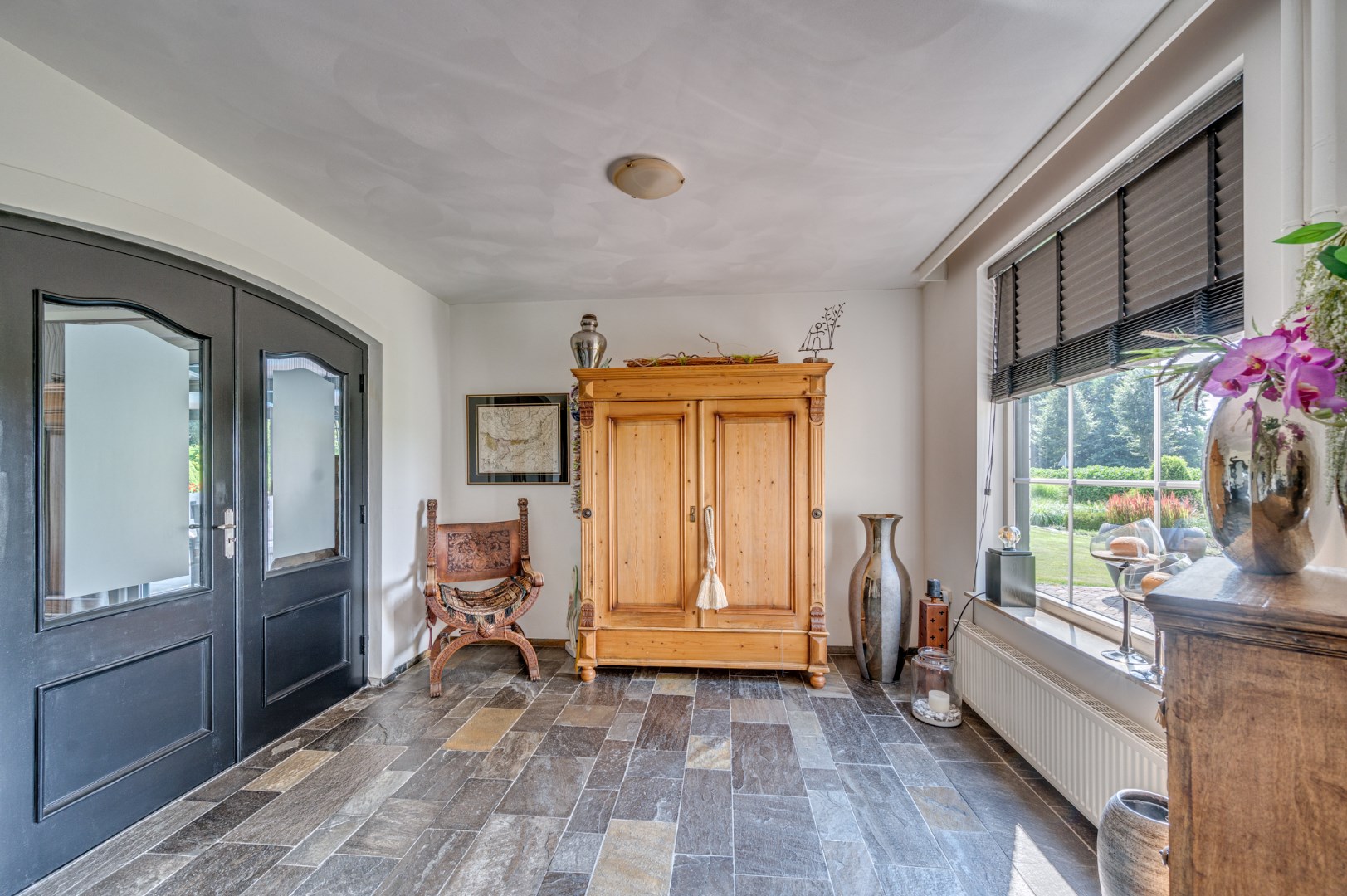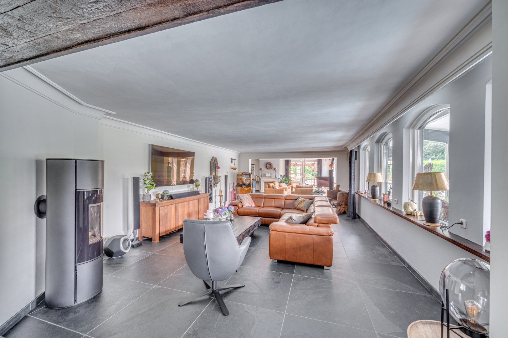 De boerderij is compleet gerenoveerd en gemoderniseerd, met behoud van sfeervolle details zoals houten balken en een warme uitstraling. Grote raampartijen zorgen voor veel natuurlijk licht en bieden een prachtig uitzicht over de omliggende tuin.
