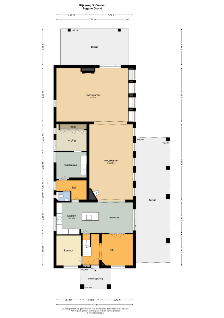 • Met nog een toilet, kantoor- (ca. 9,5m2), was- (ca. 9,5m2) en bergruimte (ca. 9,5m2) is de