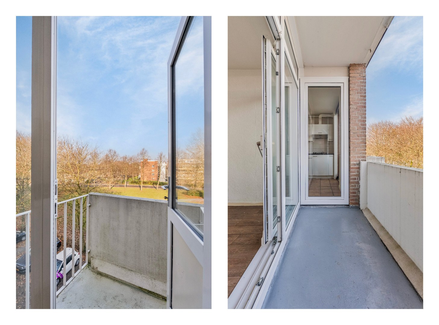 - Het balkon aan de voorzijde is via de woonkamer én keuken bereikbaar