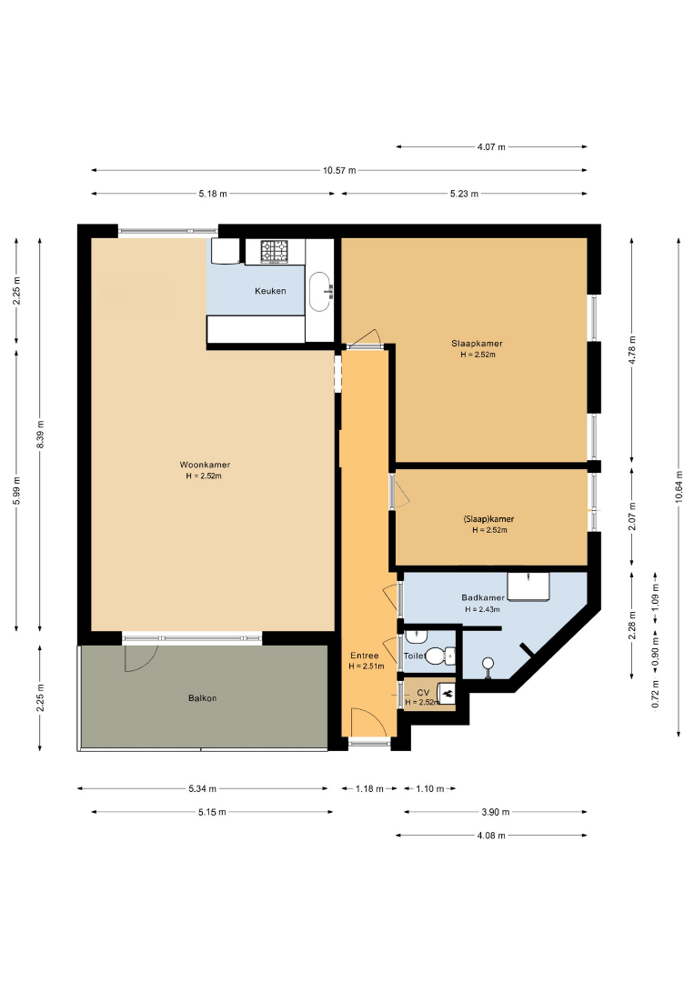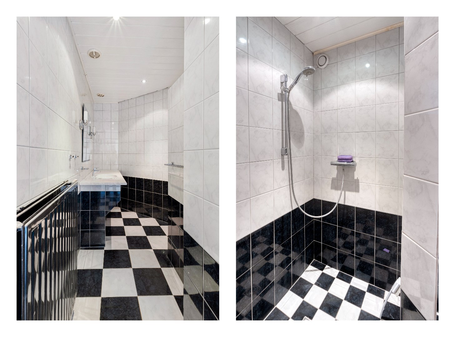 Het appartement telt twee (slaap)kamers (ca. 23m2 en 9m2), waarvan één met handige inbouwkasten en de ander met witgoedaansluitingen. De badkamer is uitgerust met een ruime inloopdouche en een wastafel.