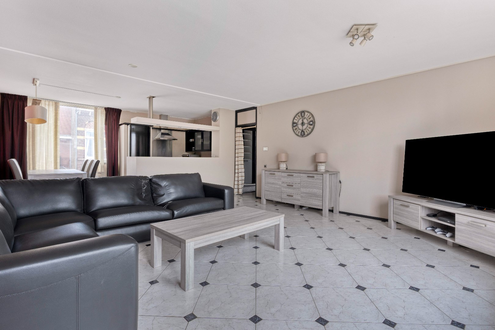Via je eigen entree kom je op de eerste woonlaag binnen in de hal met toegang tot een praktische bergruimte met CV-opstelling (combi-ketel uit 2014) en het toilet. De ruime woonkamer (ca. 36m2) biedt veel licht en directe toegang tot een sfeervol balkon (ca. 12m2) met middag- en avondzon.