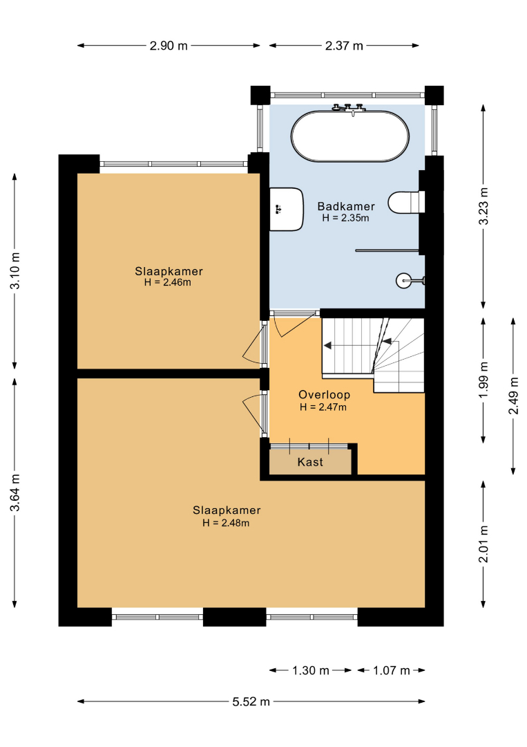 - Op de eerste verdieping kom je u op de overloop met handige inbouwkast voor extra bergruimte.