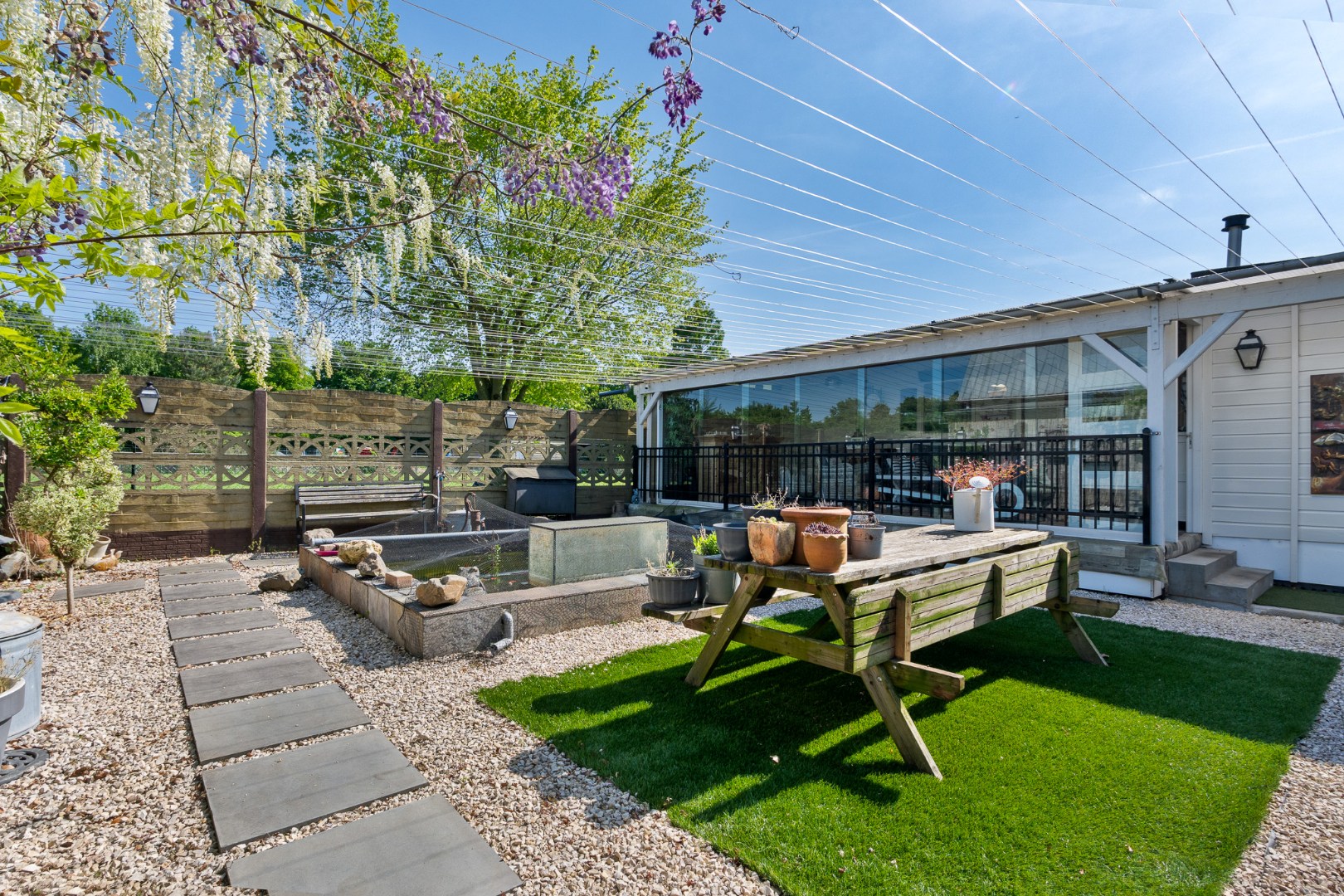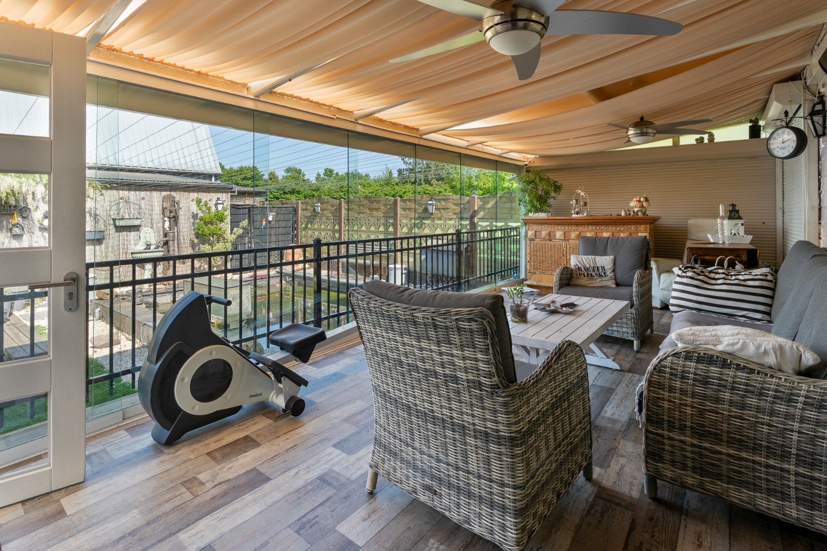 - Royale serre met prachtig uitzicht op de fraai aangelegde tuin met vijverpartij, buitendouche en een tuinhuis met sauna.