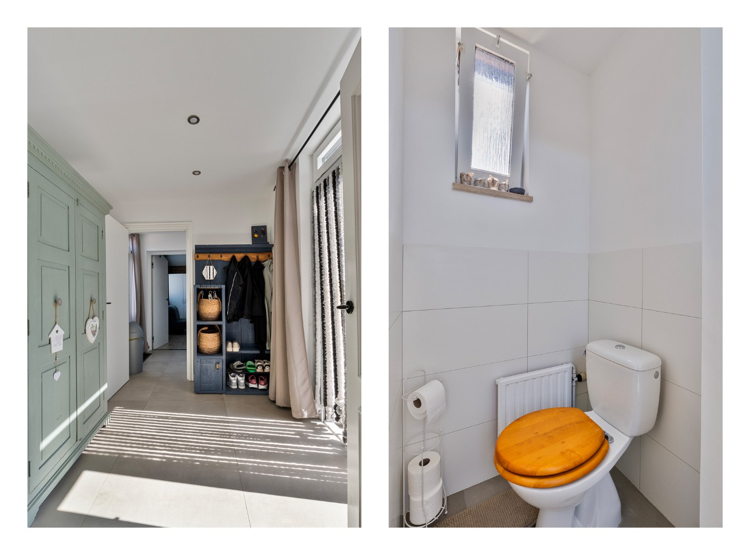 - Daarnaast is er een praktische berging, momenteel in gebruik als royale inloopkast, met een wateraansluiting voor bijvoorbeeld een wasmachine of wastafel.