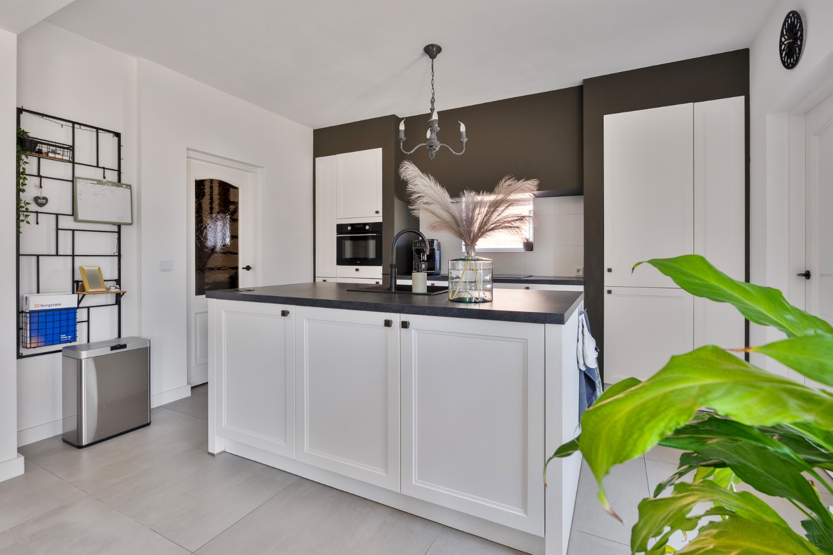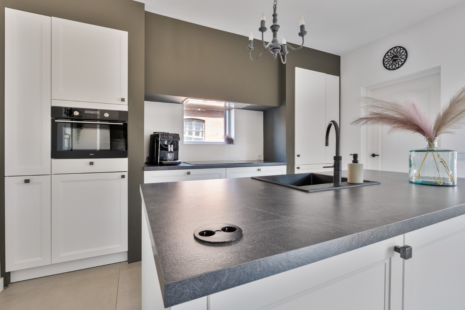 - De open keuken (2019 en ca. 12m2) is van alle gemakken voorzien. Zo vind je hier een stijlvol kunststof werkblad, een 4-pits inductiekookplaat, combi-oven, vaatwasser, koelkast en een praktische Quooker voor direct kokend water.