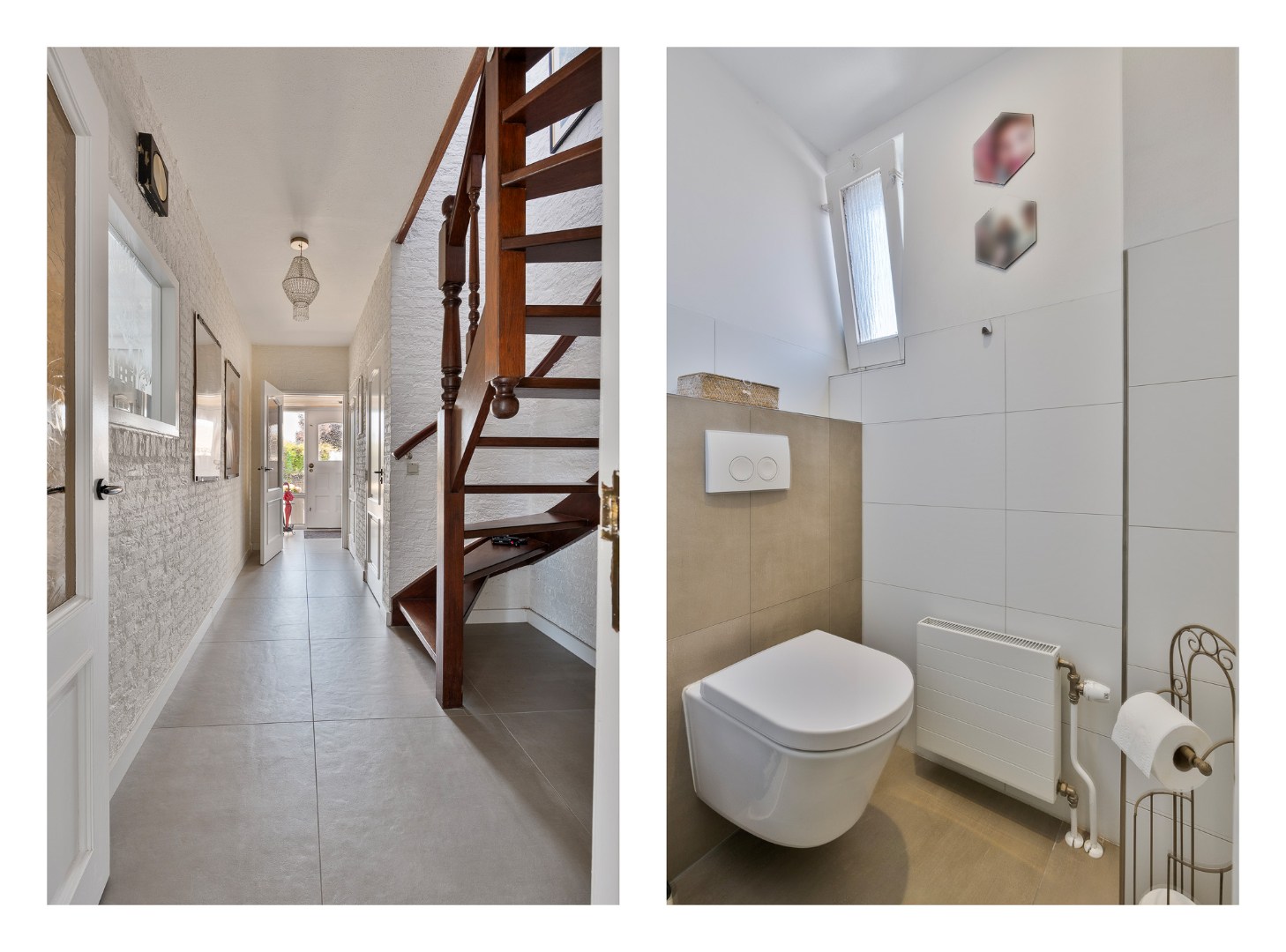 - Aansluitend bevindt zich een handige bijkeuken (ca. 6m2) met deur naar de tuin én doorgang naar een multifunctionele kantoor- of hobbyruimte (ca. 12,5m2), compleet met eigen sanitaire voorzieningen. Ideaal voor thuiswerken, een praktijk aan huis of als gastenverblijf.