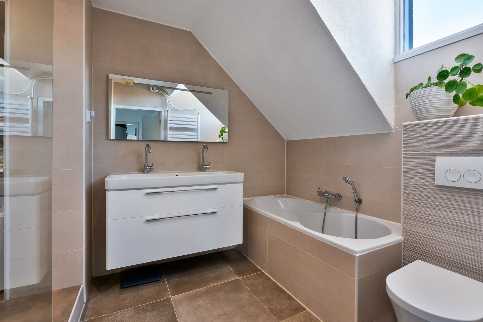 - De badkamer (ca. 8m2) is van alle luxe voorzien: een dubbele wastafel met meubel, een verwarmde spiegel, zwevend toilet, een ligbad en een royale inloopdouche.