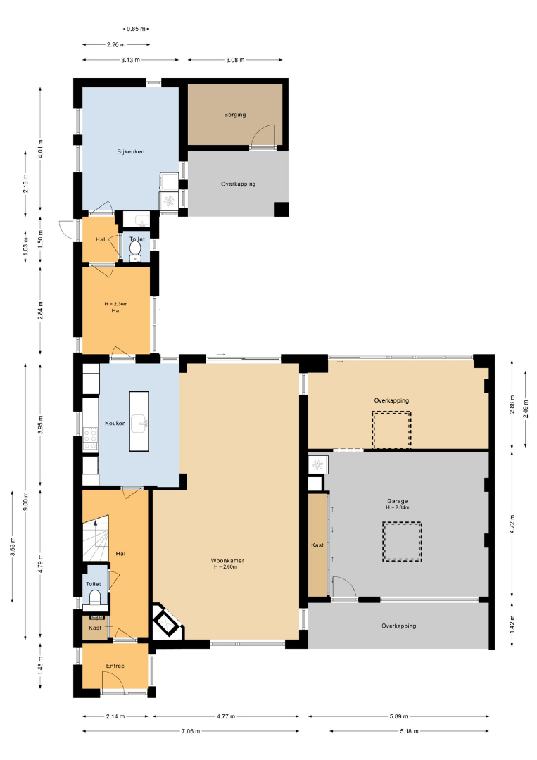 - Aanwezigheid van een separate berging (ca. 6m2) met overkapping;