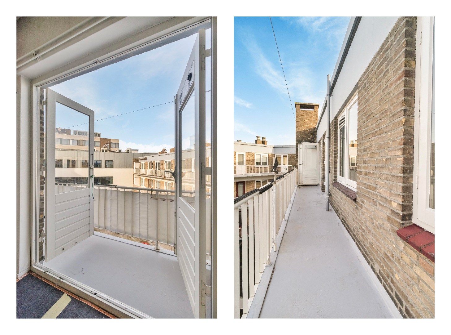 Via de royale entree/hal (ca. 12,5 m²) zijn alle vertrekken bereikbaar. De lichte en ruime woonkamer (ca. 30 m²) is voorzien van grote raampartijen en biedt toegang tot een ruim balkon van ca. 9 m². De dichte keuken (ca. 8,5 m²) beschikt over een eenvoudig keukenblok, witgoedaansluitingen en veel praktische opbergruimte. Het appartement telt drie slaapkamers van ca. 13 m², 8 m² en 8 m², allen voorzien van handige inbouwkasten. Vanuit de keuken en de grootste slaapkamer is een tweede, breed balkon van ca. 8,5 m² bereikbaar. Verder is er een badkamer met douche en vaste wastafel en een separate toiletruimte met fontein.