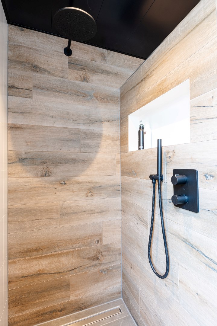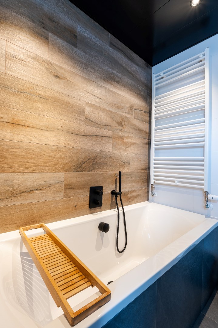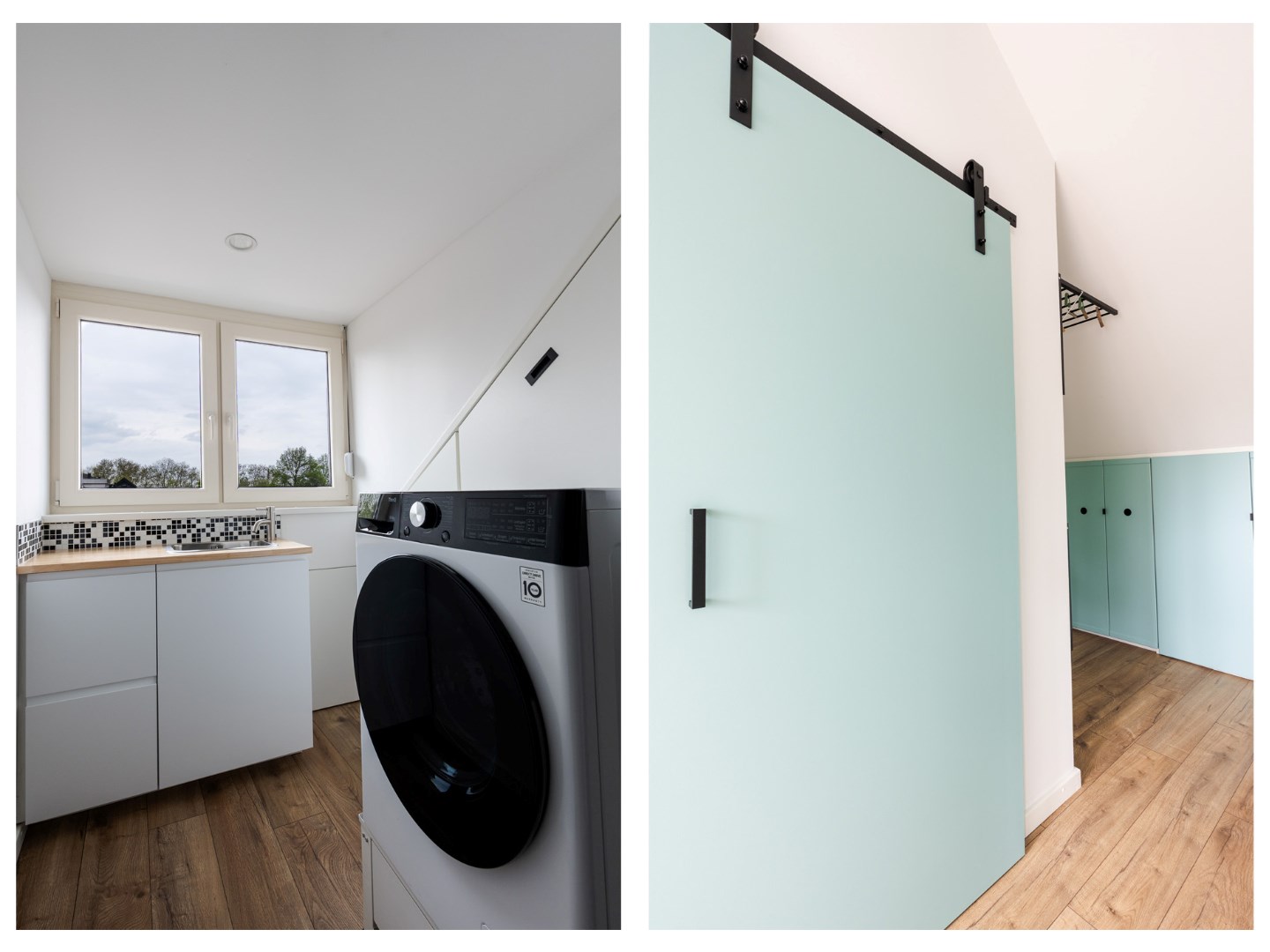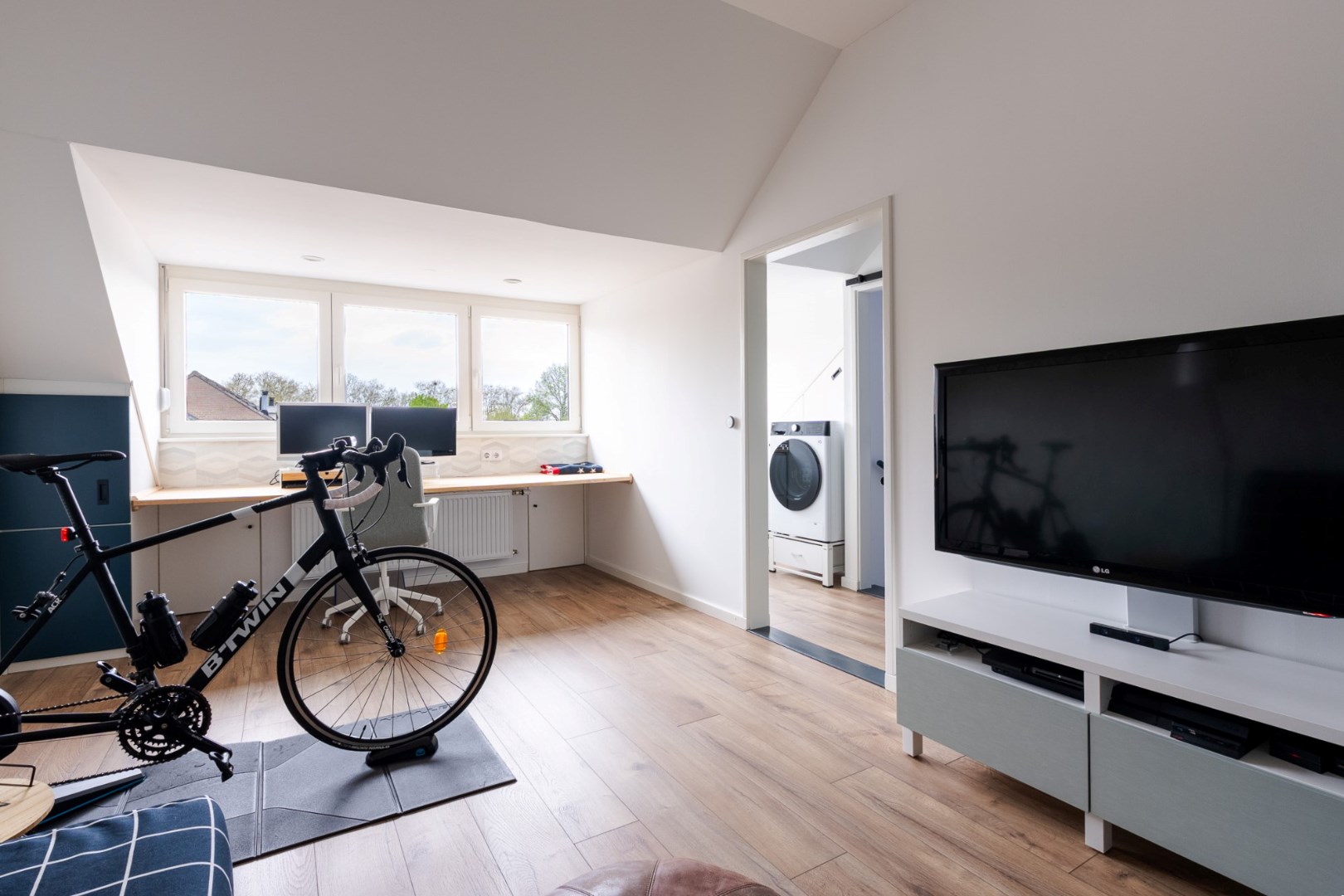 Overloop, 3 ruime slaapkamers (ca. 16,5m2, 13,5m2 en 7,5m2), nette compleet betegelde badkamer (ca. 5,5m2) met bad, douche, dubbele wastafel met meubel, 2e hangend closet, designradiator en bergruimte. De slaapkamers en overloop hebben een laminaatvloer. Via een vaste trap naar…