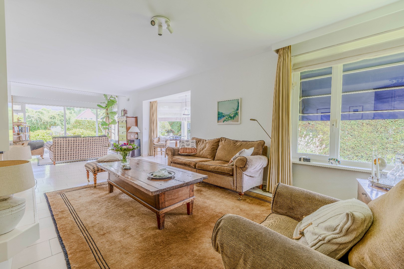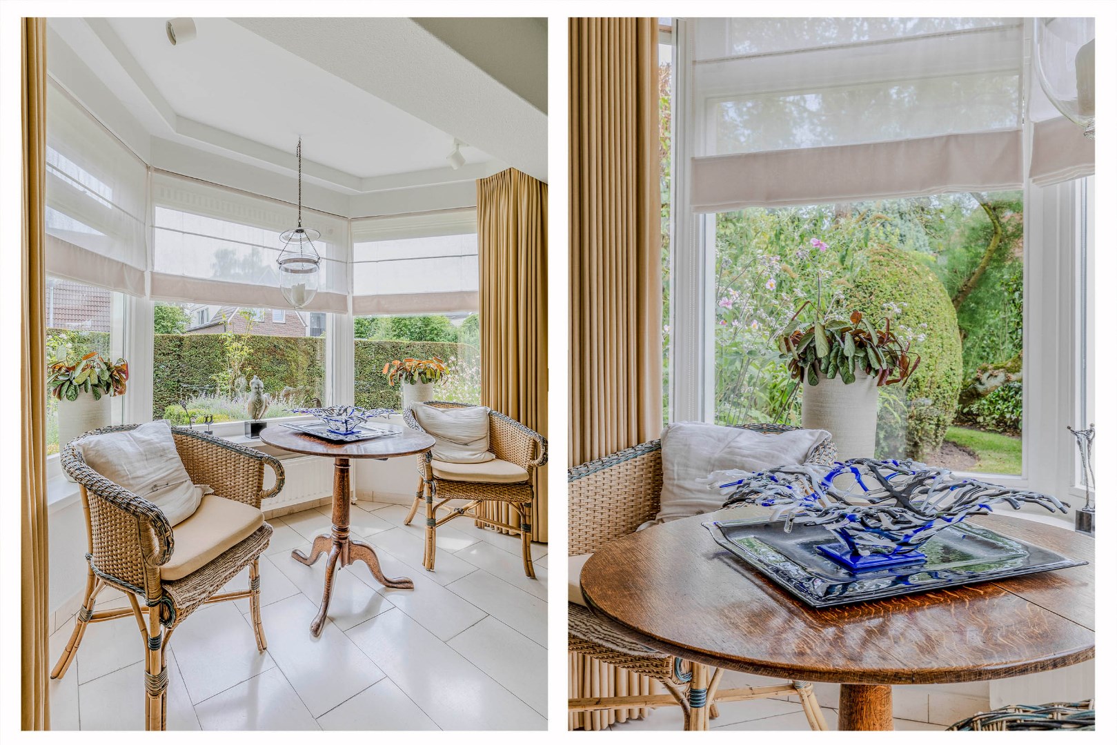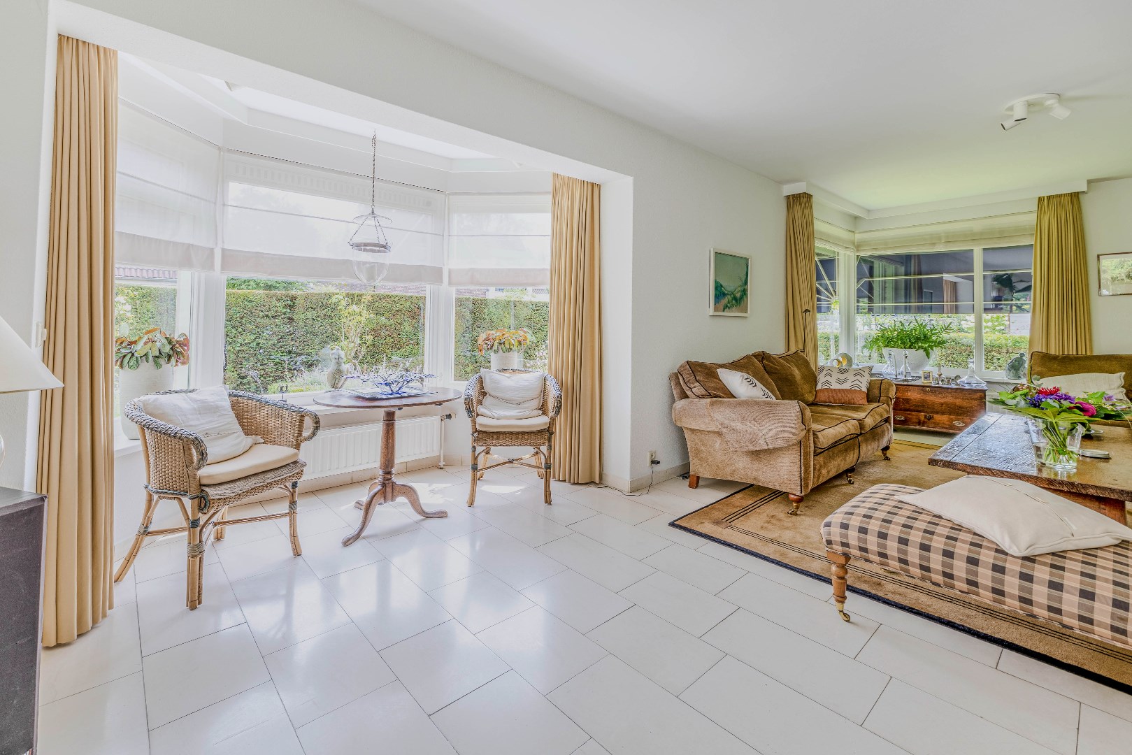 de mooi aangelegde tuin. De woonkamer is voorzien van een erker en een tv-hoek waar de