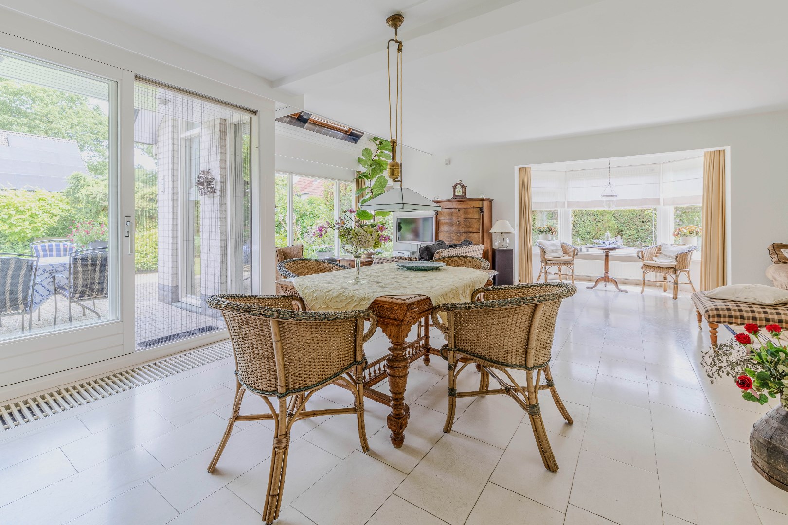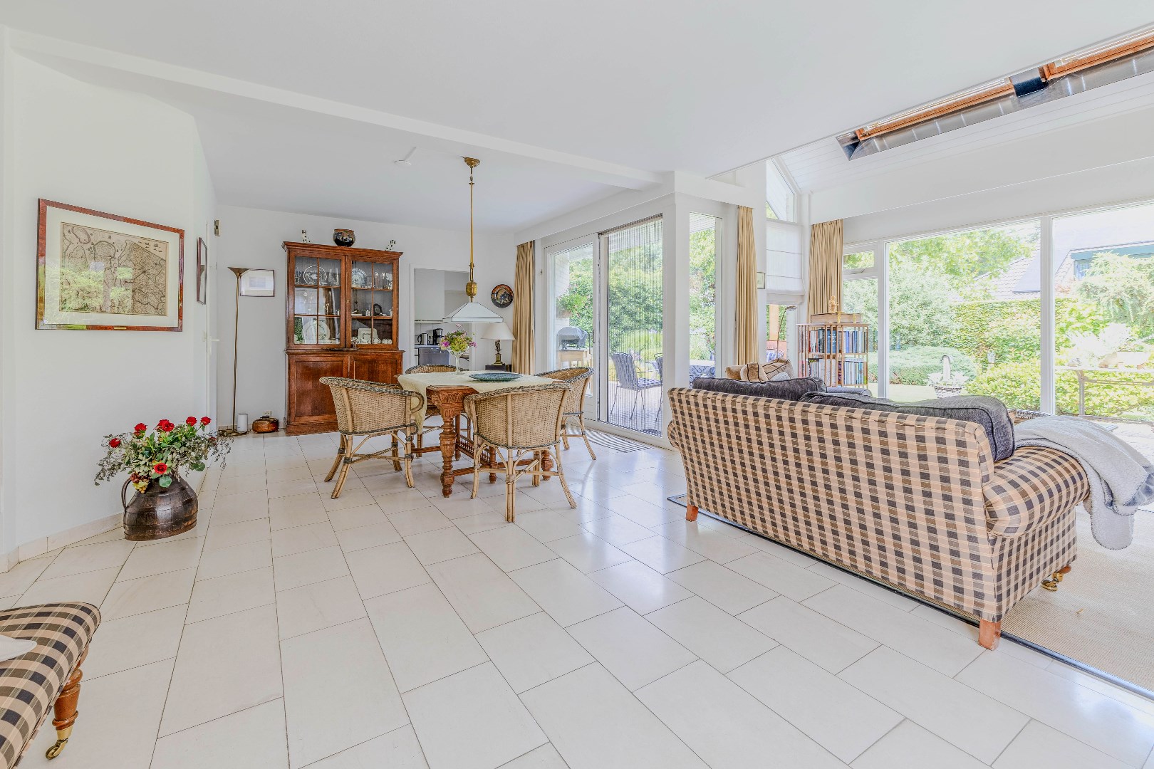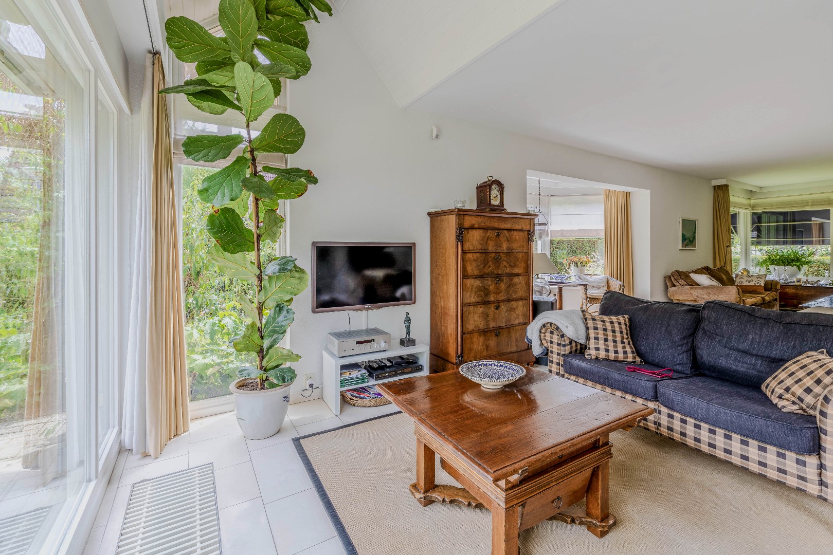 de mooi aangelegde tuin. De woonkamer is voorzien van een erker en een tv-hoek waar de