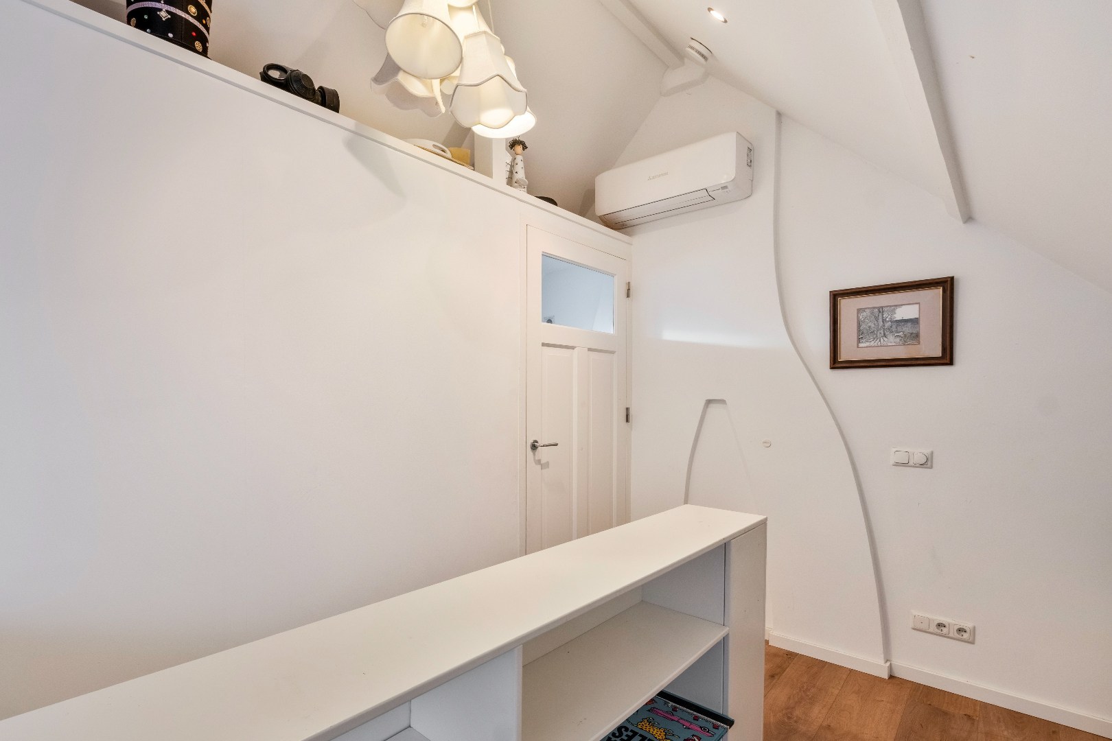 Via de vaste trap bereikt u de tweede verdieping met overloop en open slaapkamer van ca. 35 m2, daarnaast is er nog een tweede slaapkamer aanwezig van bevinden van ca.12 m2. Tevens is er op deze verdieping een airconditioning aanwezig.