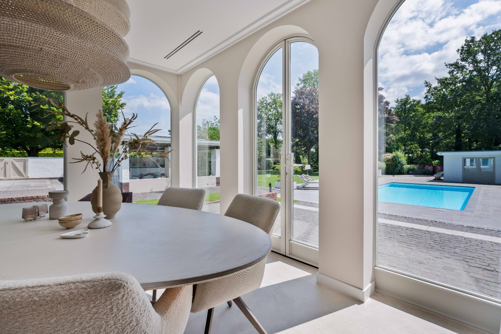 Gelegen op een royale kavel in een bosrijke omgeving biedt deze vrijstaande villa een oase van ruimte en privacy. De volledig aangelegde en omheinde tuin vormt een natuurlijk verlengstuk van het interieur, waar luxe, comfort en een gevoel van vakantie elkaar ontmoeten. Een luxe buitenhuis, een verwarmd zwembad met eigen poolhouse en een royaal terras nodigen uit tot buitenleven in optima forma. Denk aan lange zomerse avonden met vrienden en familie en een glas wijn in de hand: een vleugje zuidelijke flair, zodat het buitenleven voelt als een permanente vakantie.