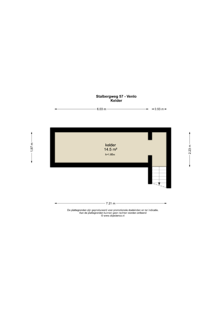 - Provisiekelder (ca. 14,5m2), nu in gebruik als timmerwerkplaats, met stahoogte