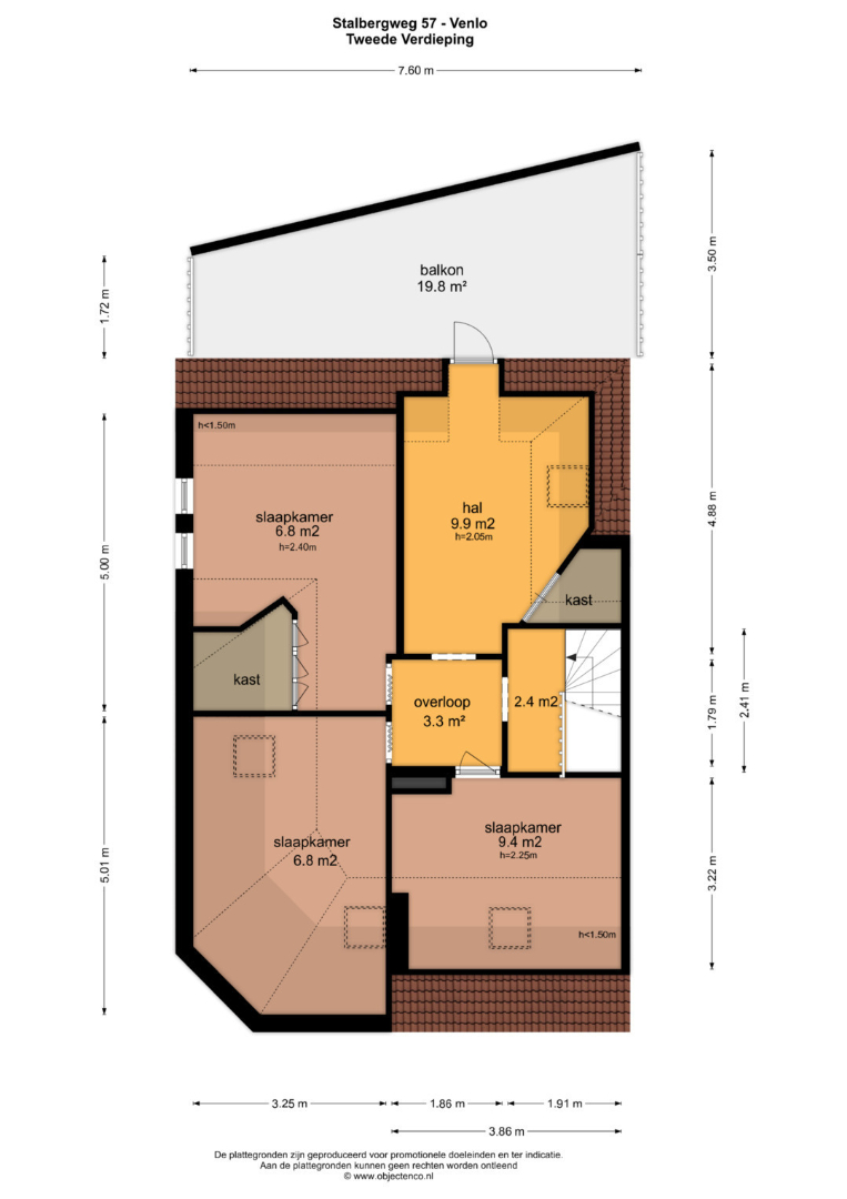 - Overloop, 3 slaapkamers van resp. ca. 9,5m2, 7m en 7m2 met diverse praktische bergruimtes. Verder is er een multifunctionele ruimte welke toegang biedt naar het terras van ca. 20m2 bereikbaar. Deze ruimte zou eveneens als slaapkamer kunnen dienen.